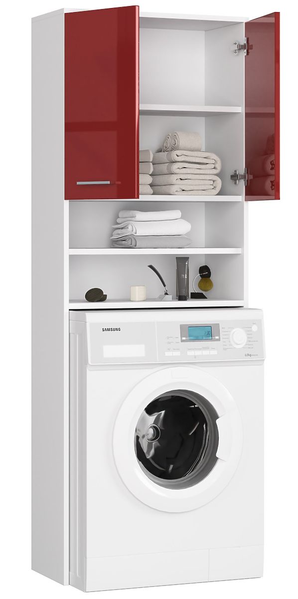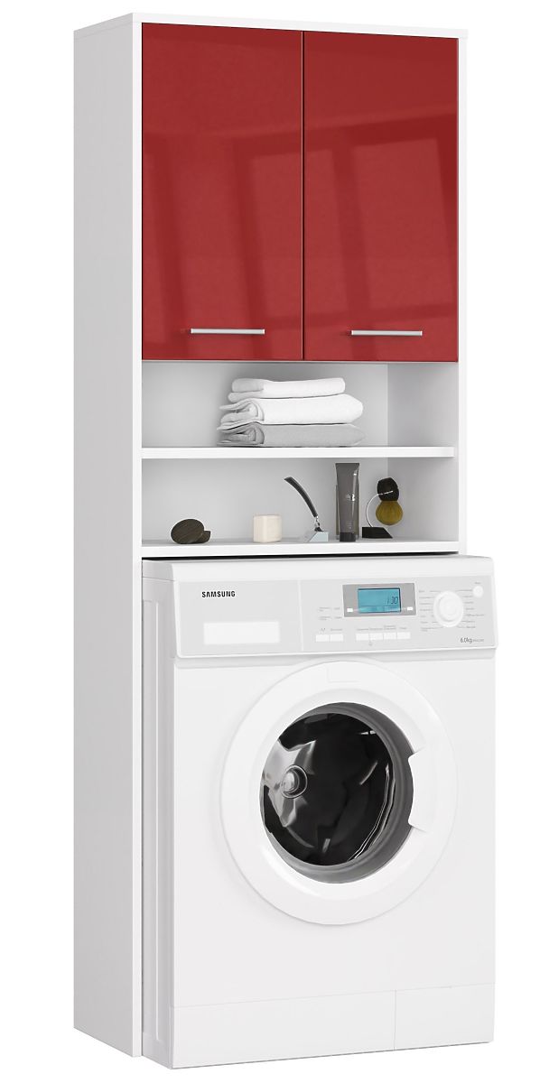 Lukafurniture.eu » Bathroom & Toilet / Bathrooms lockers / BATHROOM SHELF FIN ABOVE WASHING MACHINE WHITE / RED GLOSS