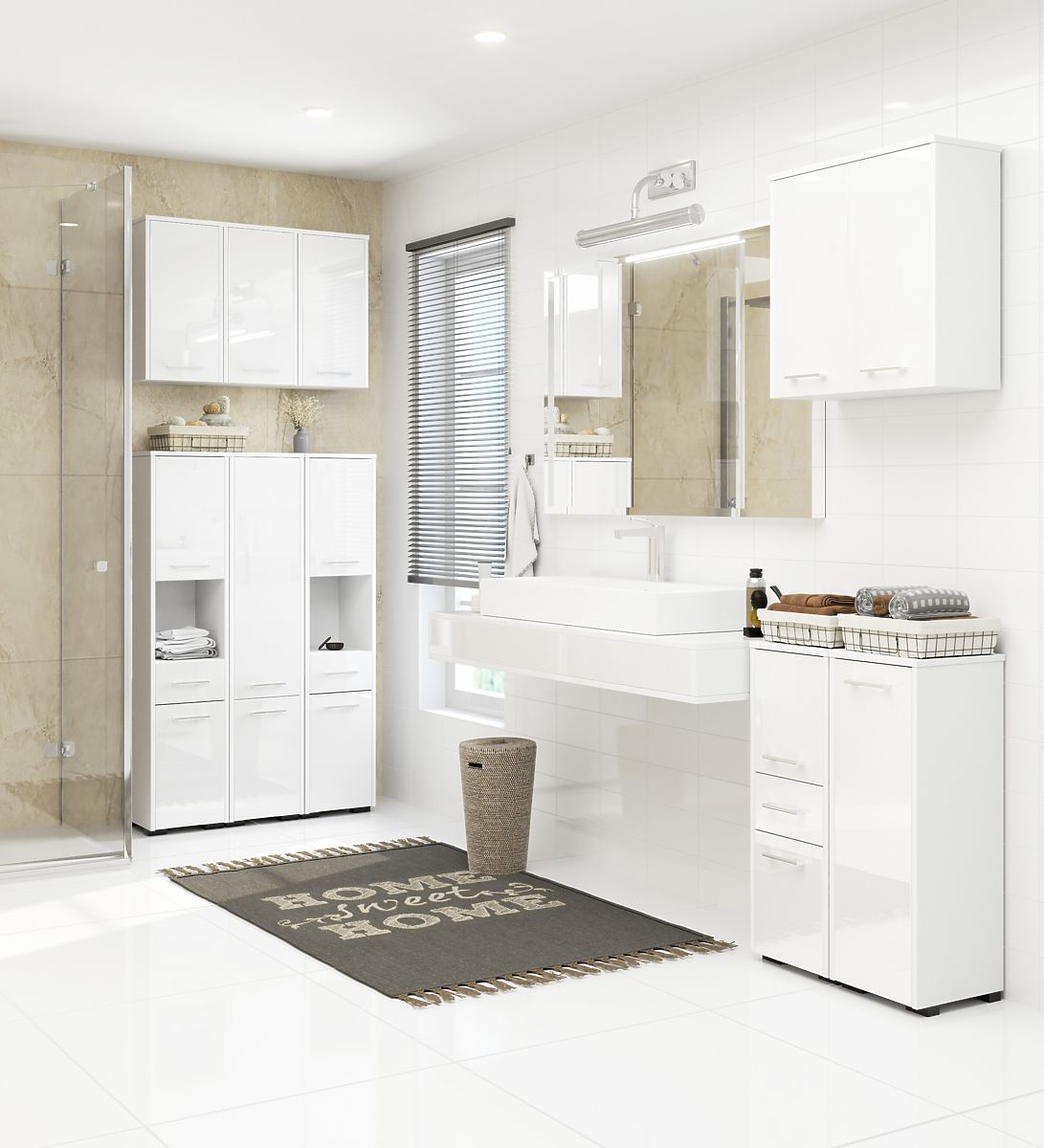 Lukafurniture.eu » Bathroom & Toilet / Bathrooms lockers / BATHROOM SHELF FIN 2D 1SZ 1W PK WHITE / WHITE GLOSS