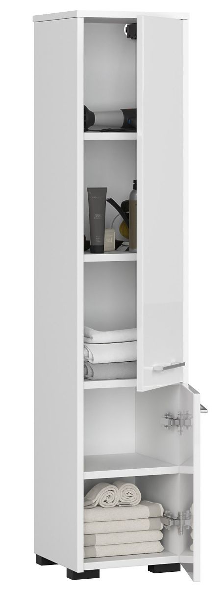 White gloss bathroom cabinet with 2 doors and 4 shelves. .. more
