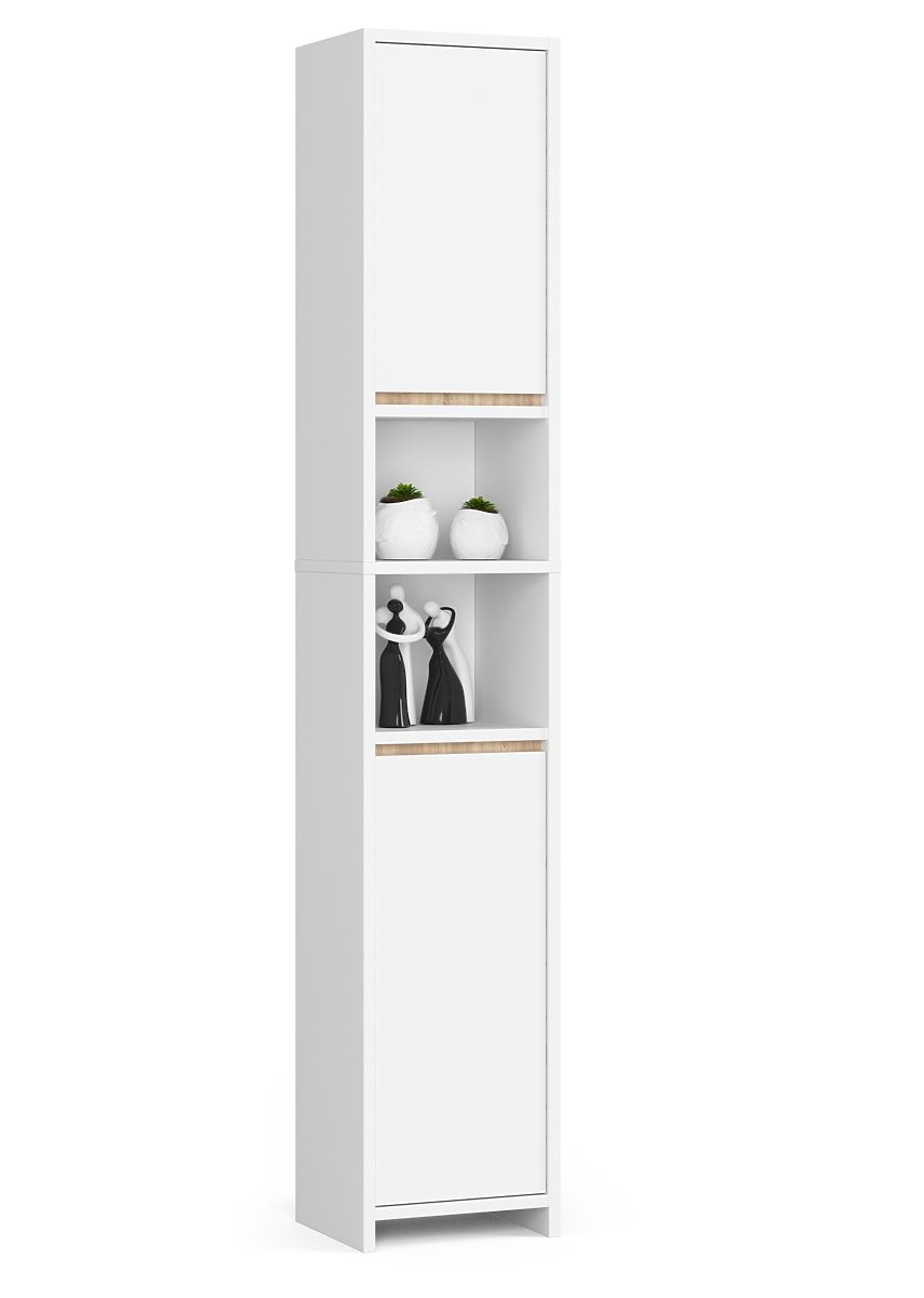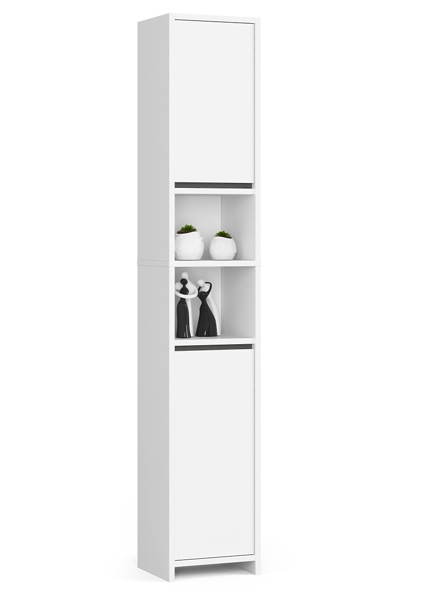 White bathroom cabinet with 2 doors and 4 shelves. .. more