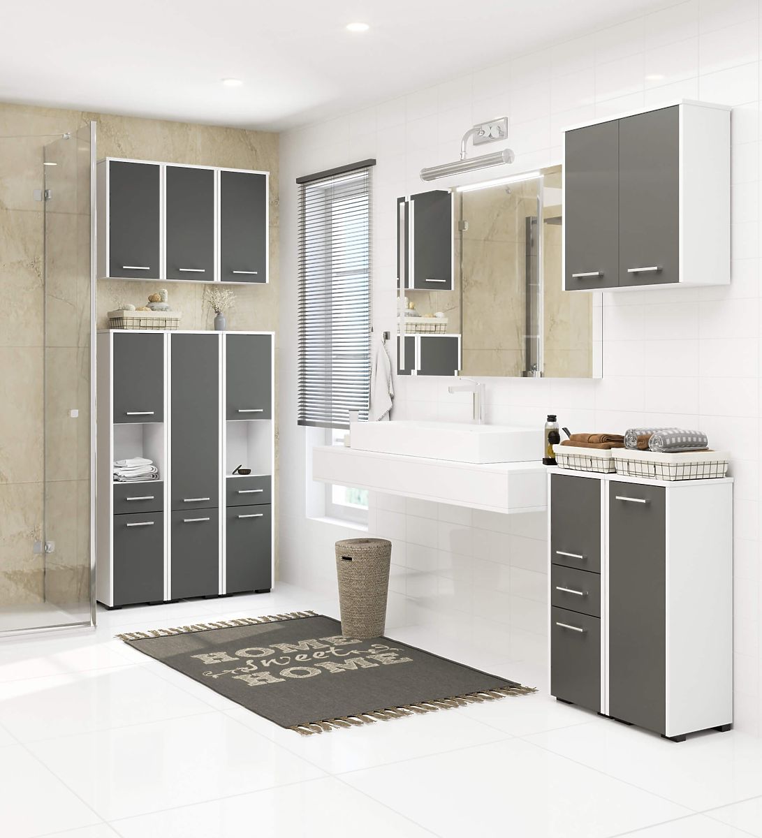 Lukafurniture.eu » Bathroom & Toilet / Bathrooms lockers / BATHROOM CABINET FIN COLUMN 30 2D 1SZ 85cm PK WHITE / GRAY