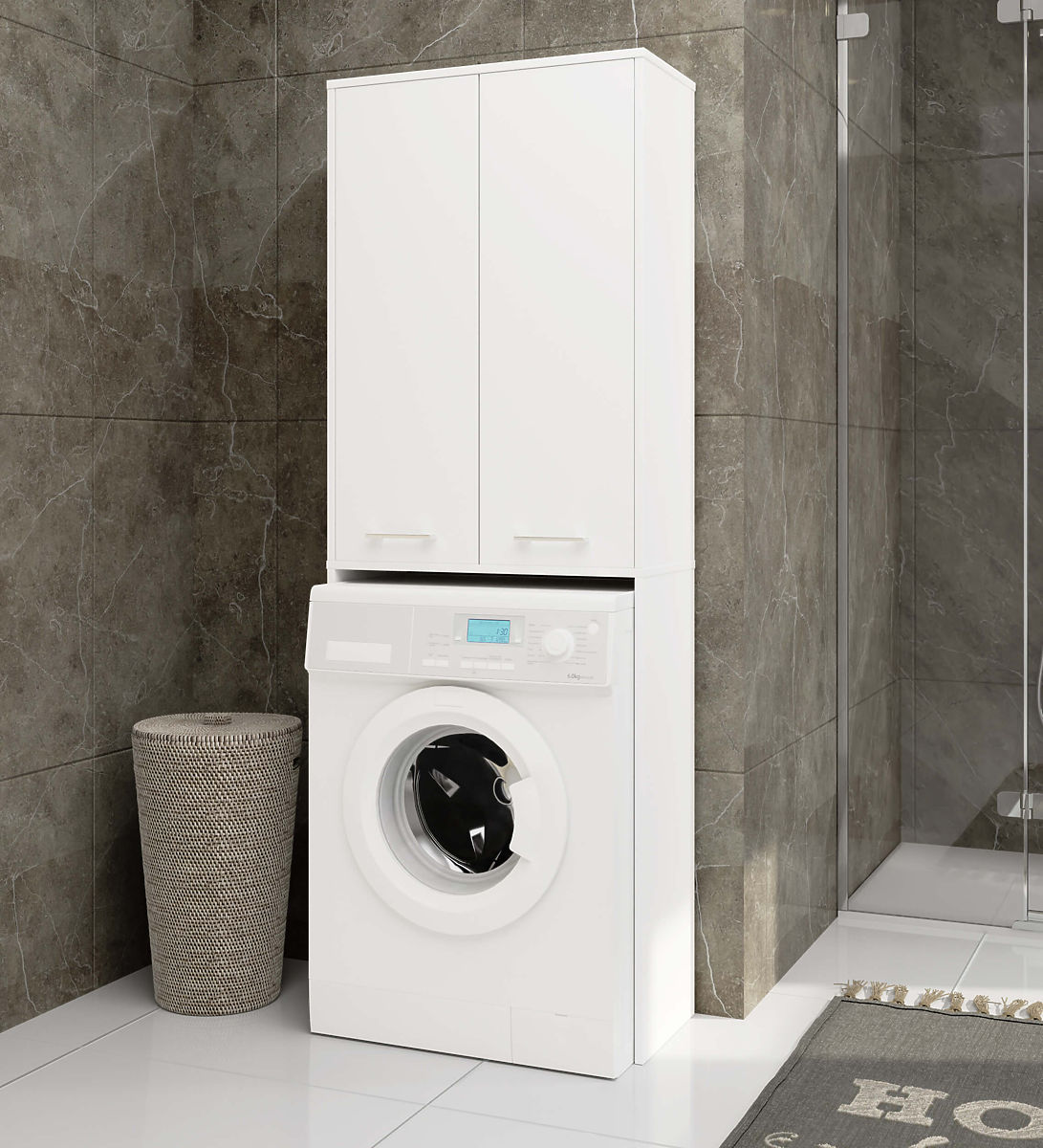 If we want our bathroom to be furnished comfortably and stylishly, we should opt for solidly and functionally made furniture. Such is certainly the cabinet above the washing machine. It is an ideal way to utilize the space above the washing machine, which usually remains unused. The optimal dimensions of this column make it a great solution for bathrooms with a small area. Its ergonomic shape allows it to be used in any room. This furniture, consisting of an extension above the washing machine and a cabinet above it, creates a large amount of storage space for various items. In the cabinet, we can store products like detergents or hygiene products. These shelves are intended for storing personal cosmetics or towels. The beautiful white shade guarantees us an elegant bathroom appearance. The laminated board from which this cabinet is made is a high-quality material. It ensures the durability and strength of the furniture, as well as maintaining its aesthetic appearance.