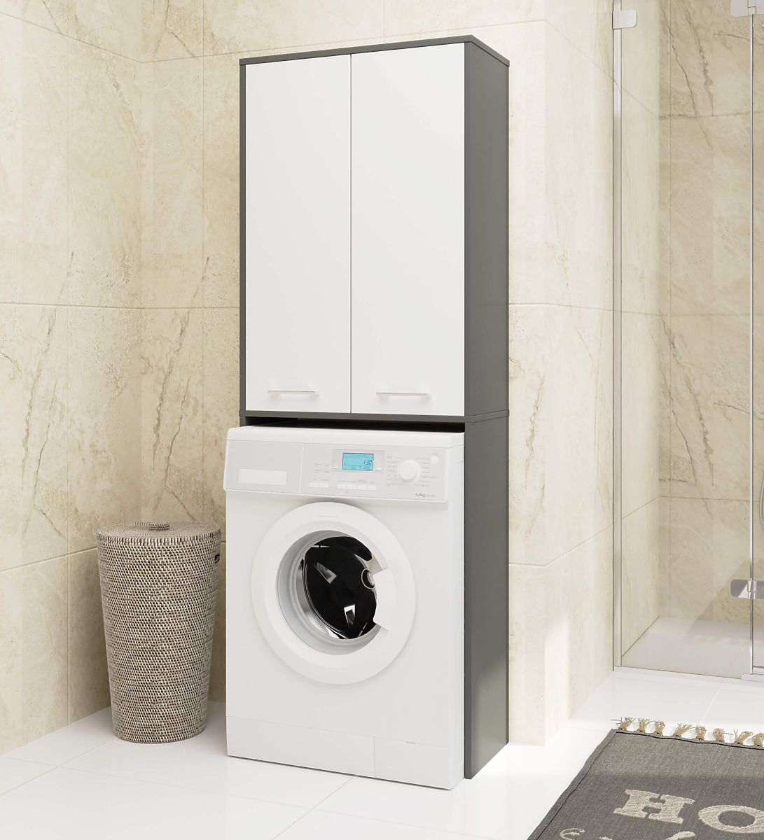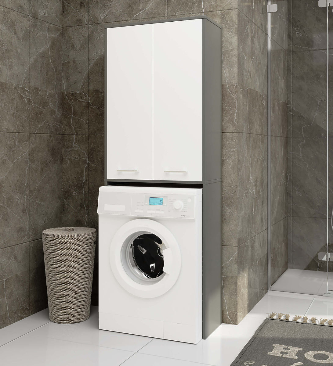 Lukafurniture.eu » Bathroom & Toilet / Bathrooms lockers / BATHROOM UNIT FIN 180 FOR WASHING MACHINE FULL 2D - GRAY / WHITE