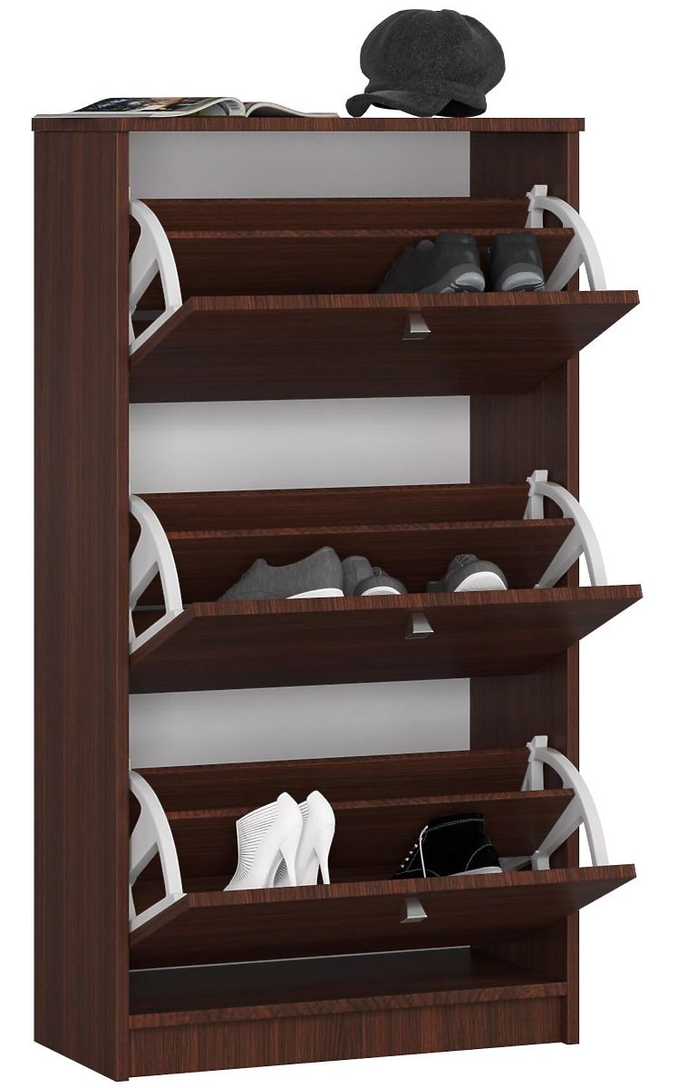 Wenge shoe cabinet with 3 flip doors, fits 18 pairs of shoes. .. more