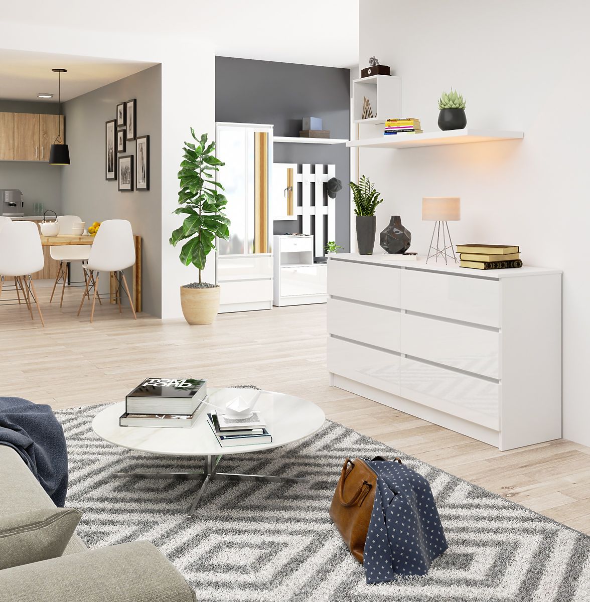 White gloss dresser with 6 drawers and self-assembly. .. more