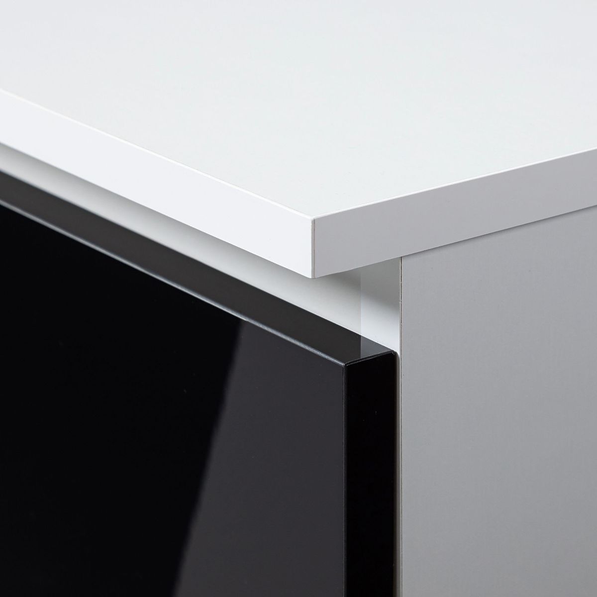 Body: 16mm semi-matte white laminated board, Fronts: BLACK ACRYLIC 19mm high gloss