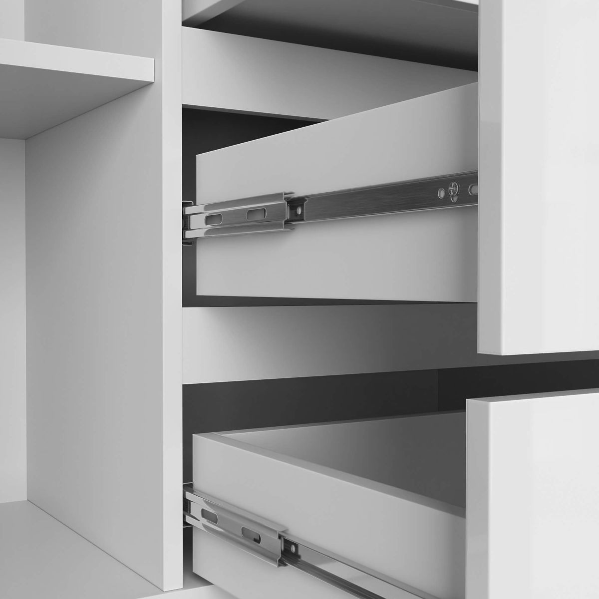 - Drawers move on metal ball-bearing slides- Edges are equipped with ABS edging providing high protection against damage