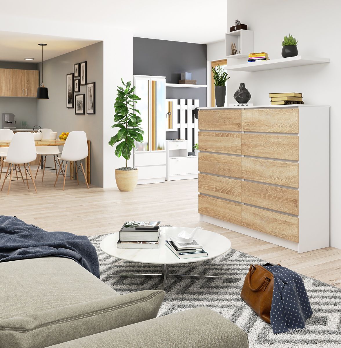 White and Sonoma Oak chest with 10 drawers and ABS edges. .. more