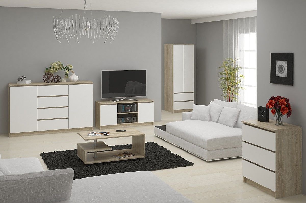 The advantages of the products we offer also include functionality and competitive prices. We recommend purchasing the sideboard, which is a combination of Sonoma oak and classically beautiful white. It will certainly be an adornment to any modernly furnished interior - bedroom, living room, youth room, guest room, or office-like interior.