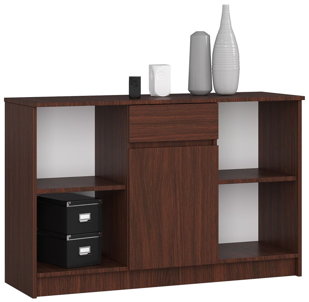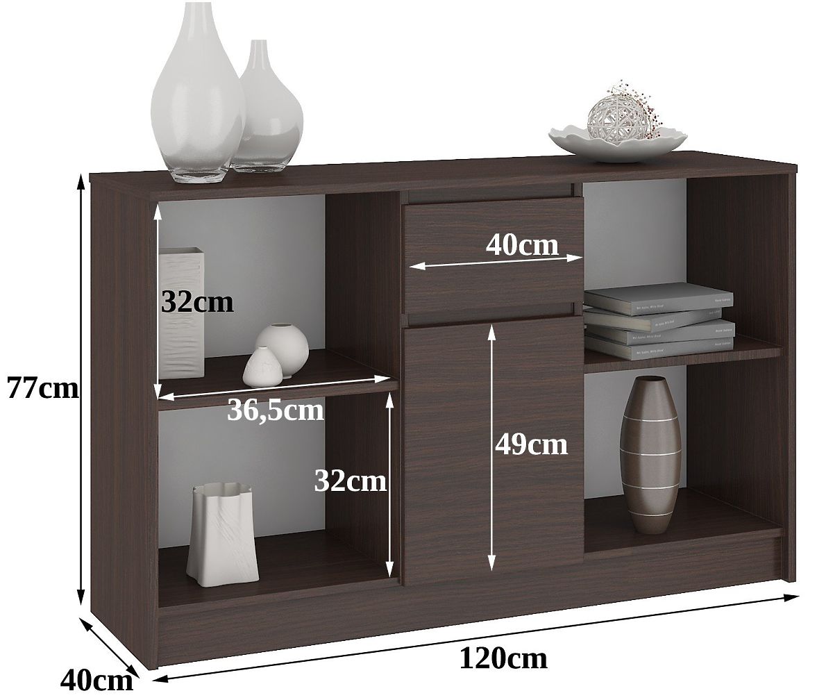 What do we consider when choosing furniture for our interior? Primarily the appearance. We want the furniture we choose to perfectly match the other elements of the interior decor. The universal and timeless chest of drawers in the stylish wenge color will undoubtedly meet your requirements. The chest of drawers from the B-17 set is a modular design that allows for the creation of a corner desk set available in our online store. It also works great as a standalone piece of furniture. Its dimensions are 120 centimeters / 77 centimeters / 40 centimeters. The furniture is easy to maintain, and its high quality deserves attention. The durable and abrasion-resistant board from which it is made has been designed in an interesting color scheme. The favorable price of the product also deserves attention. We recommend getting acquainted with other offers from this collection.