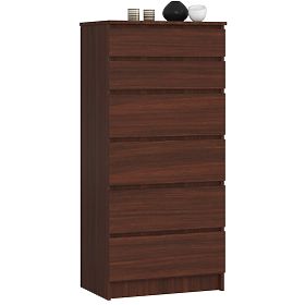 This very tall commode, designed in a beautiful wenge color, consists of six drawers. Two narrower ones are placed at the top, while the remaining four are of the same size. The furniture is perfect for office spaces where a large number of documents are stored, but it also finds use in residential areas.