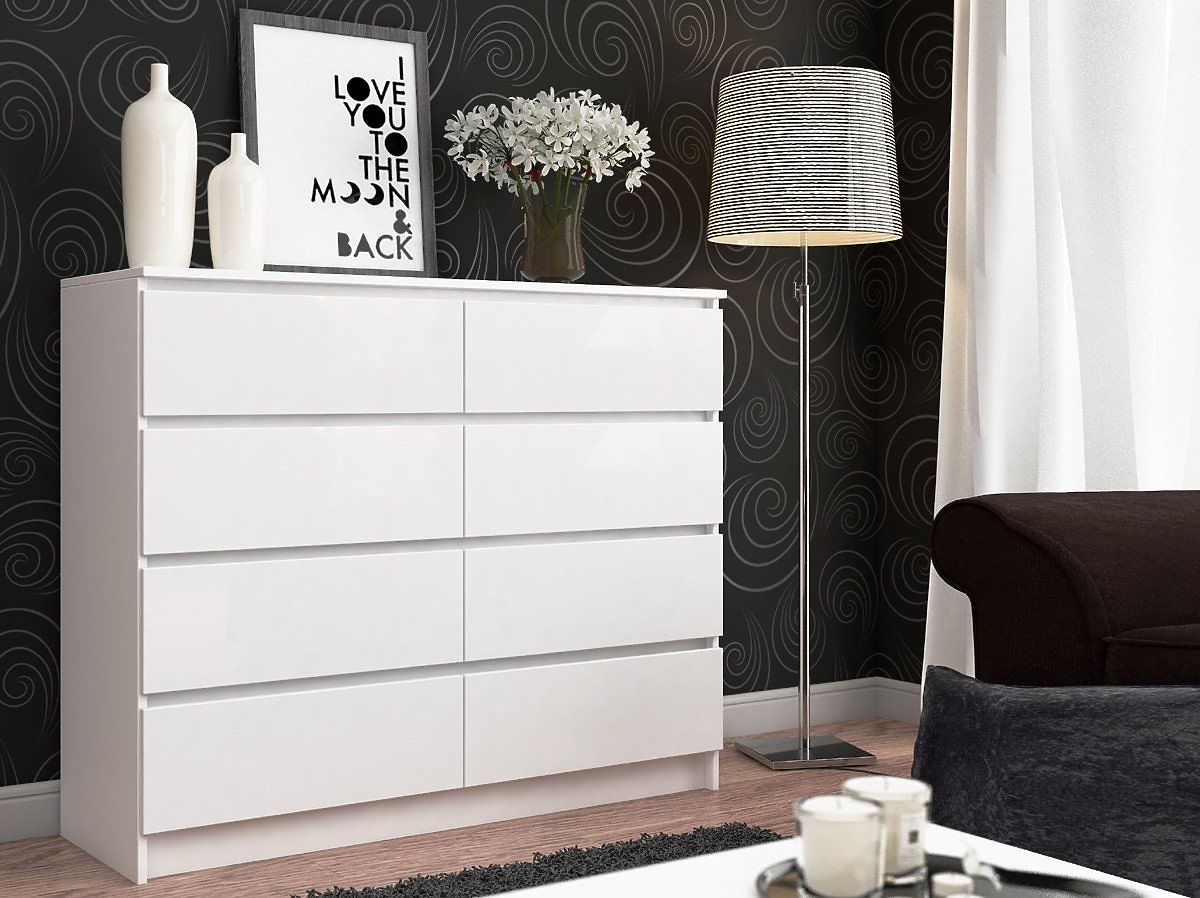 Spacious white chest of drawers with eight drawers. .. more