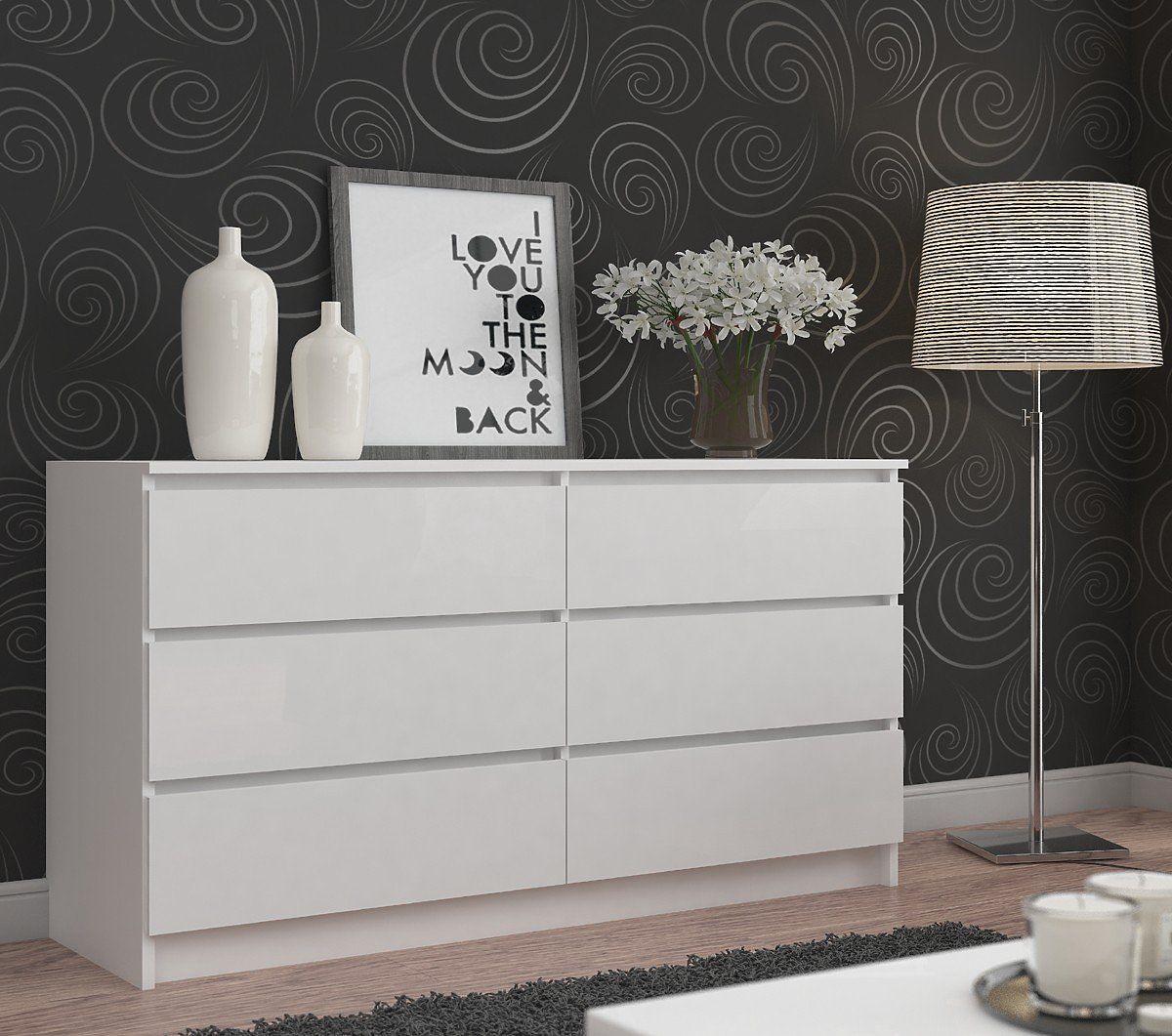 White chest of drawers with six spacious drawers, perfect for various interiors. .. more