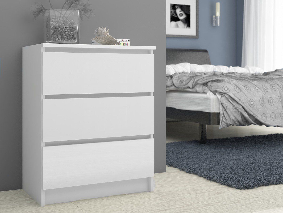 WHITE CHEST OF DRAWERS K60 3 DRAWERS Made from 16mm abrasion-resistant laminated board.
