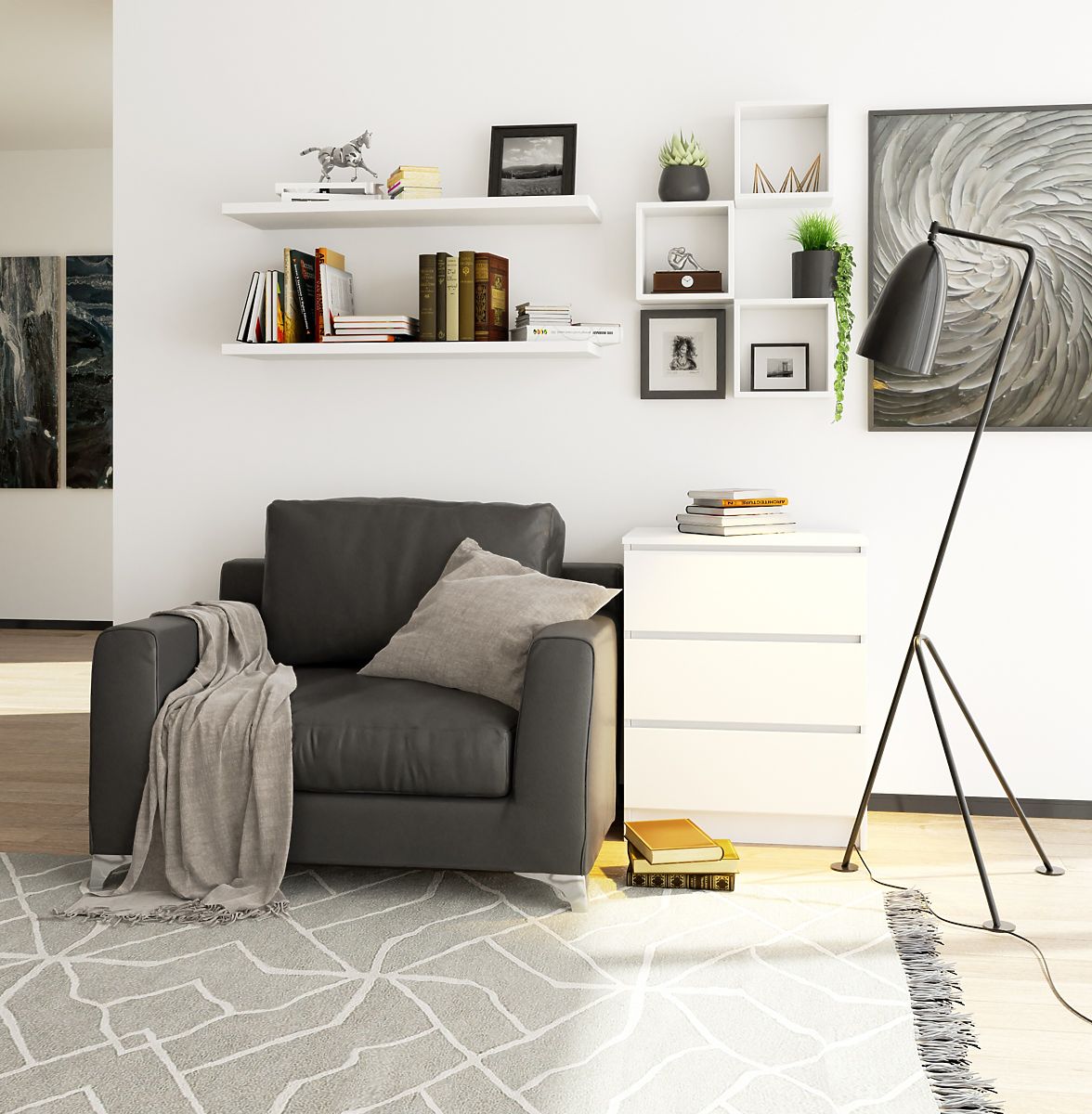White chest of drawers with 3 drawers for versatile use. .. more