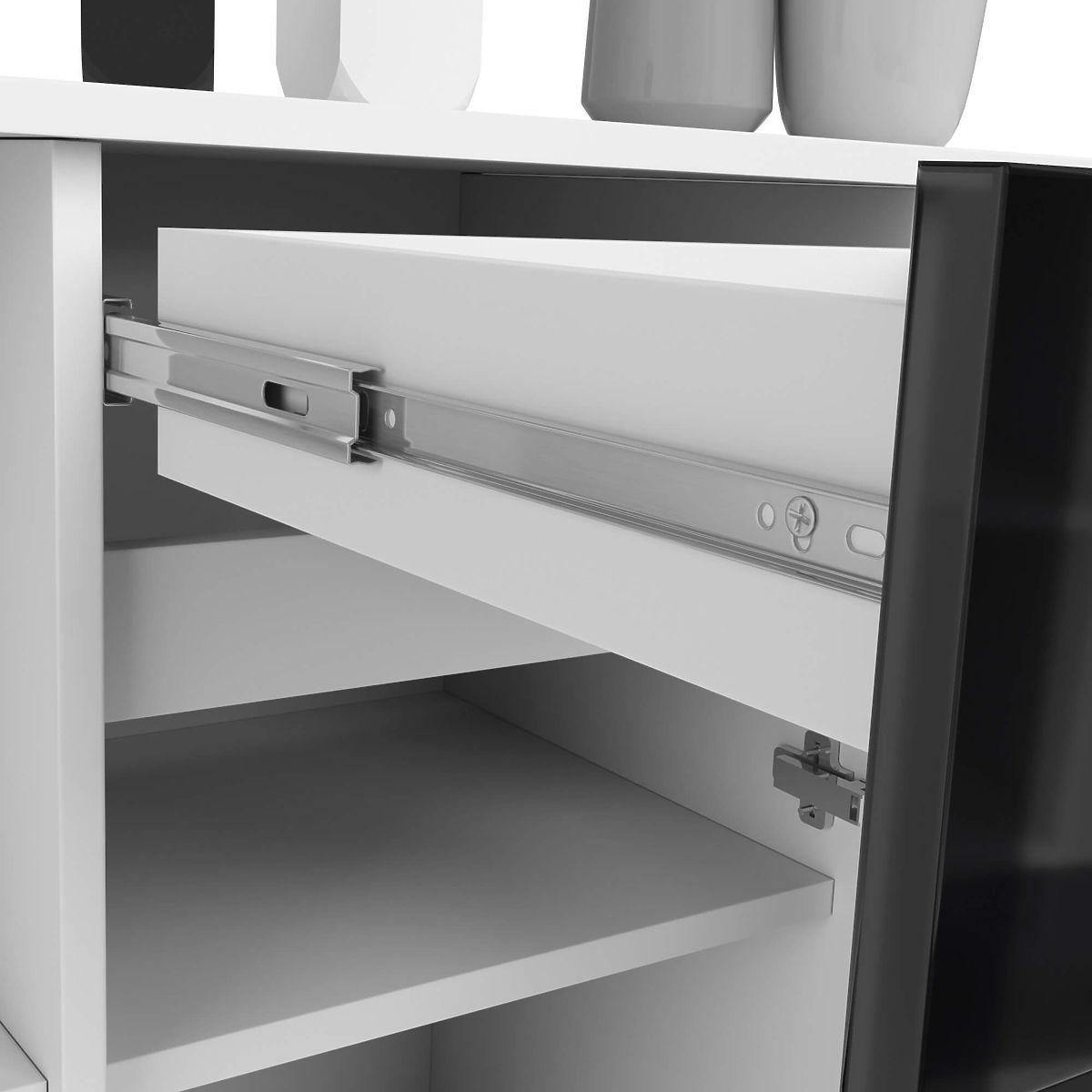Spacious white sideboard with black gloss fronts and modular design. .. more