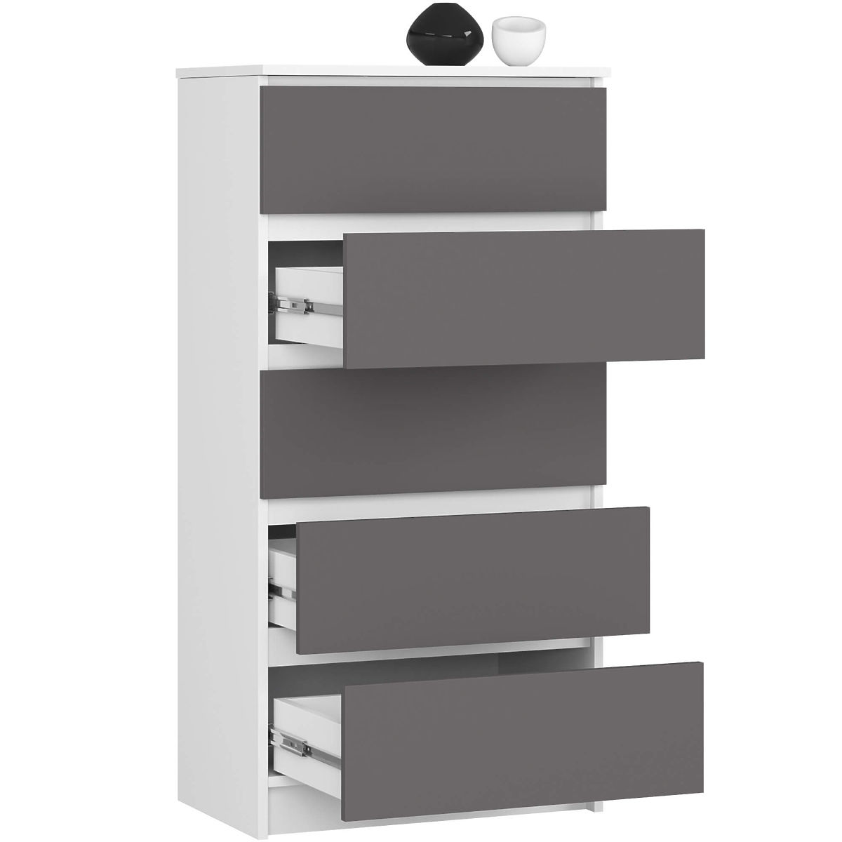 White and gray chest of drawers with 5 drawers and ABS edges. .. more