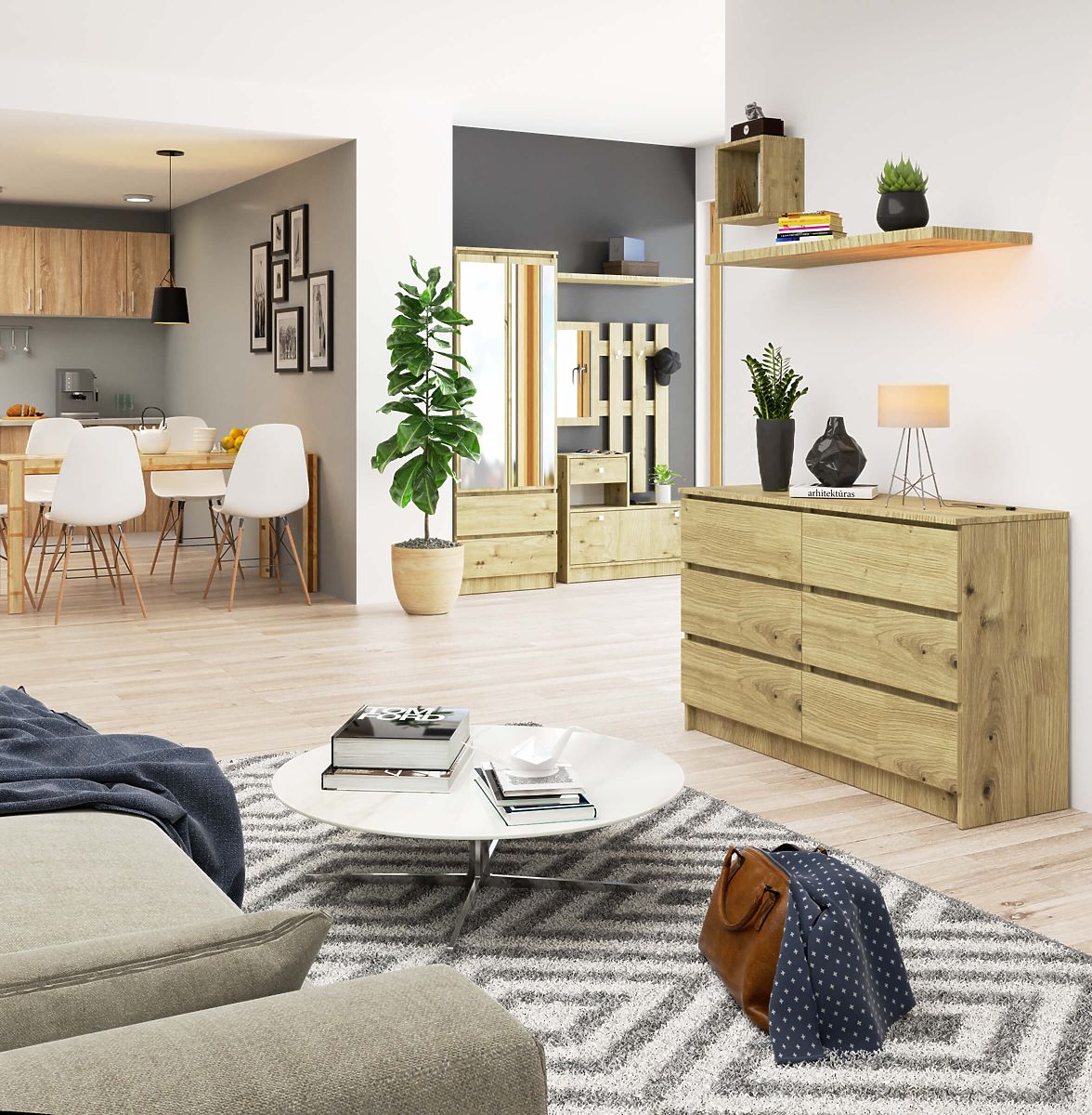 SIDEBOARD K120 WITH 6 DRAWERS Made from 16 mm thick laminated board resistant to abrasion.