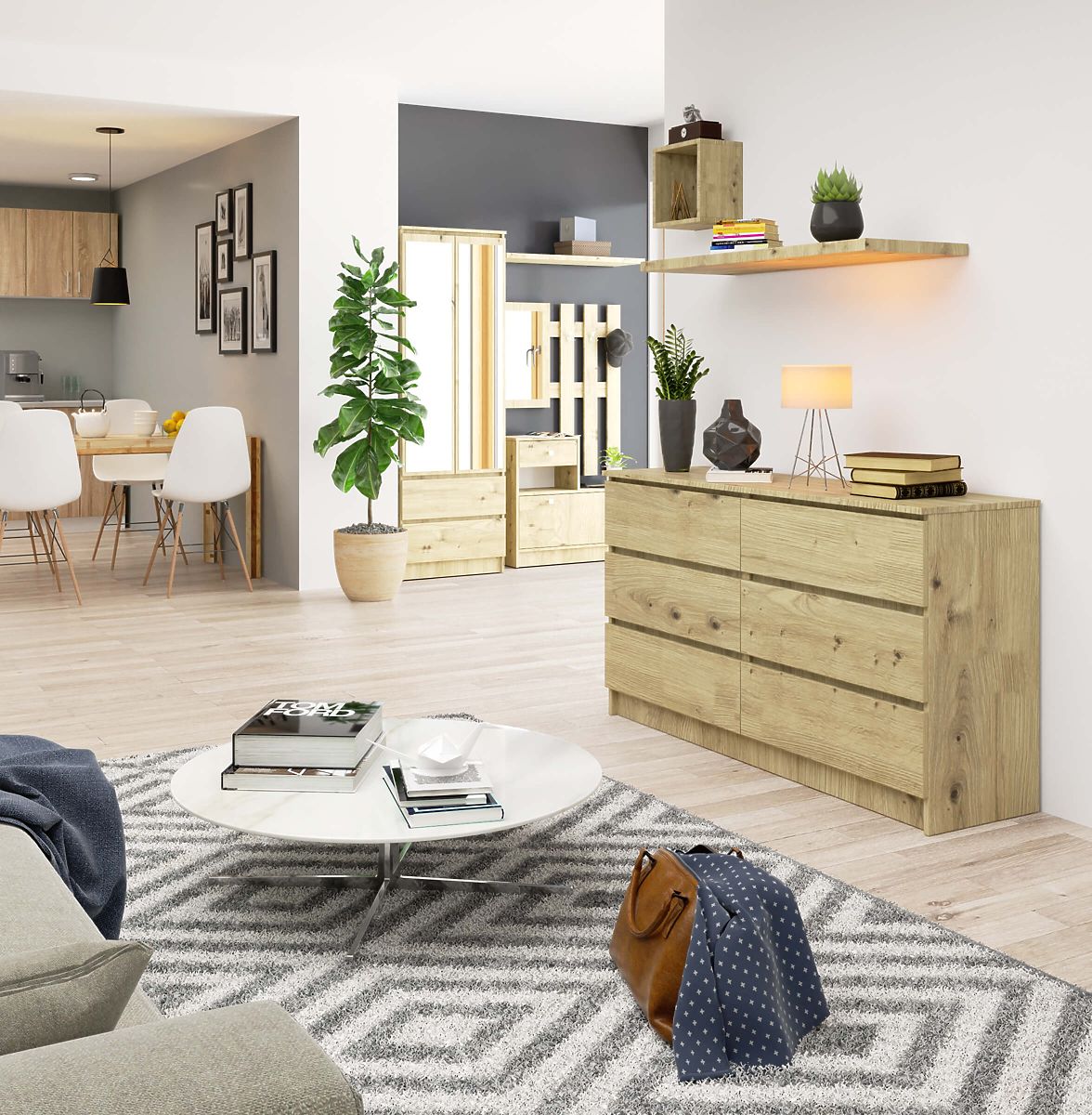 Sideboard with 6 drawers in Artisan Oak, self-assembly required. .. more