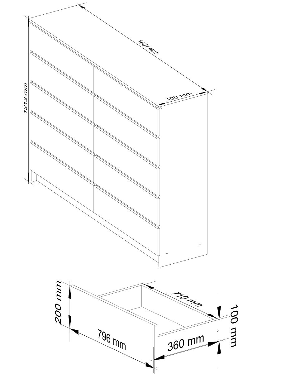 CHEST OF DRAWERS K 160cm 10 DRAWERS Made from 16mm abrasion-resistant laminated board.