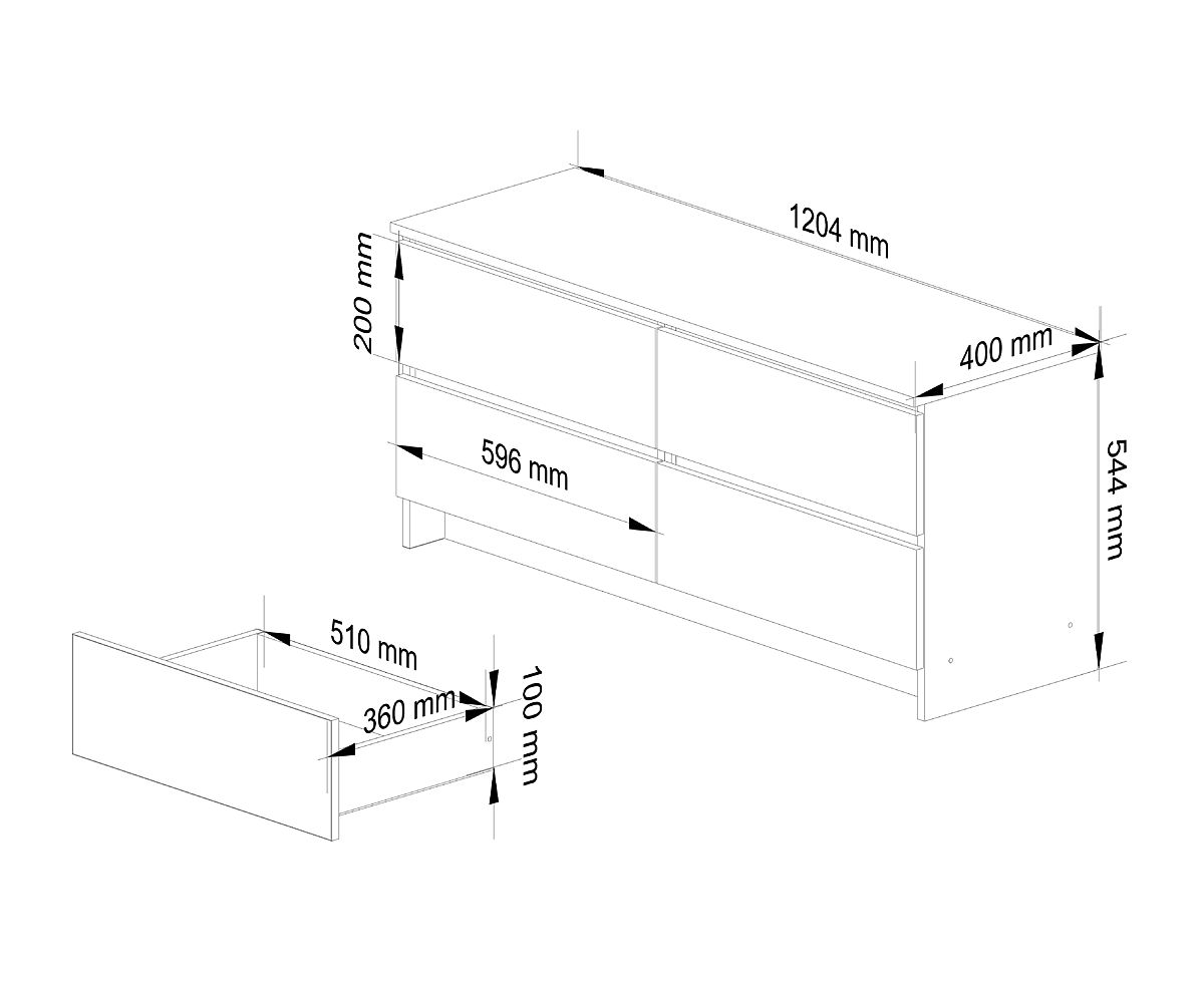 White chest of drawers with 4 drawers and ABS edge protection. .. more