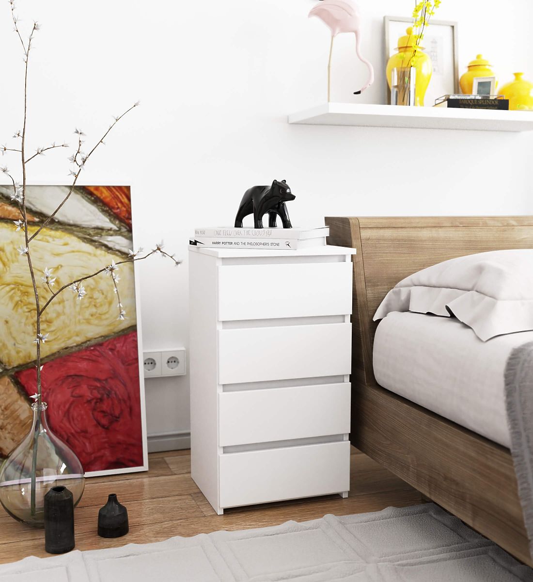 Chests of drawers are a popular type of furniture placed next to the bed. A lamp is most often found on its top, while inside are items that facilitate rest and sleep. Those looking for an elegant chest of drawers should pay attention to the CL4 40 cm chest in white. It will look beautiful in any bedroom. It can also be placed in a children's room.