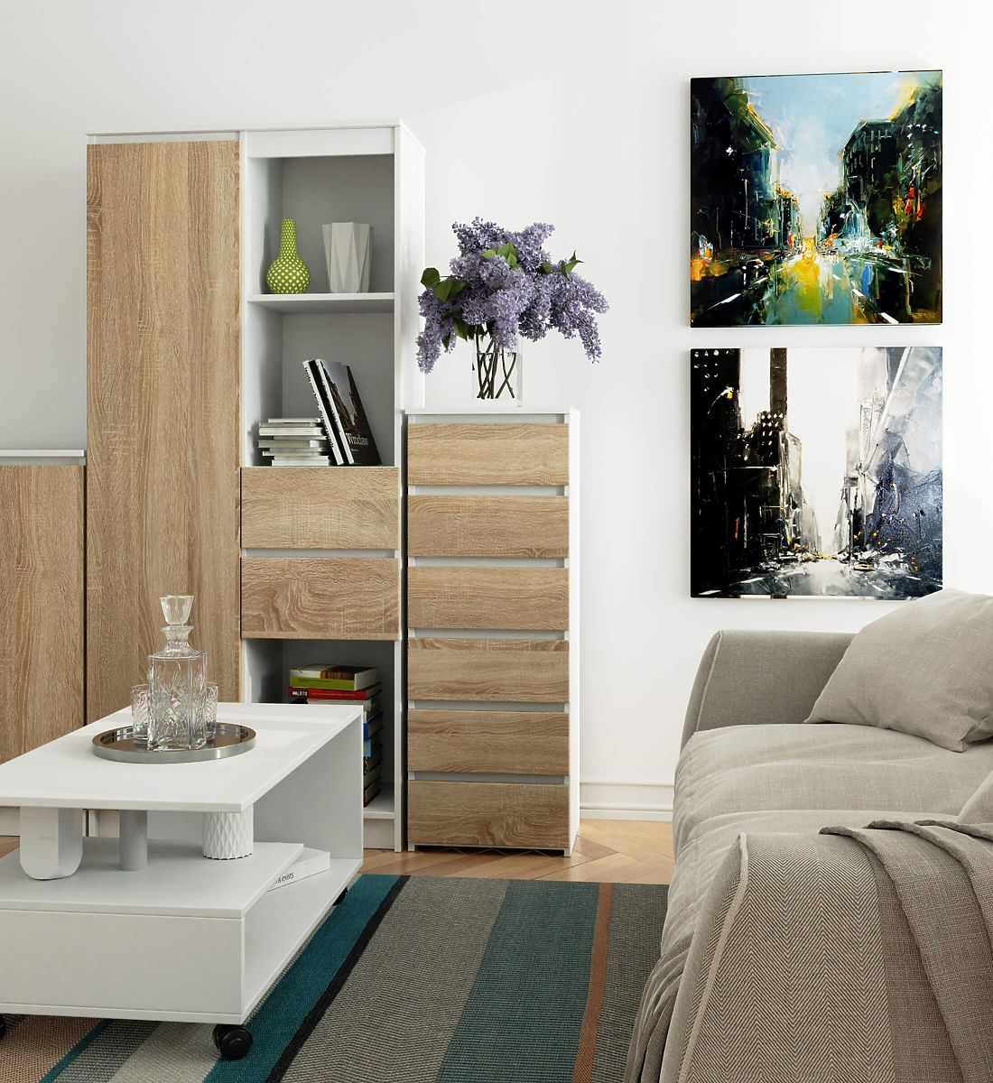 Chests of drawers are a popular type of furniture placed next to the bed. A lamp is most often found on its top, while inside are items that facilitate rest and sleep. Those looking for an elegant chest of drawers should pay attention to the CL6 40 cm in white with oak sonoma fronts. It will beautifully stand out in any bedroom. It can also be placed in a children's room.