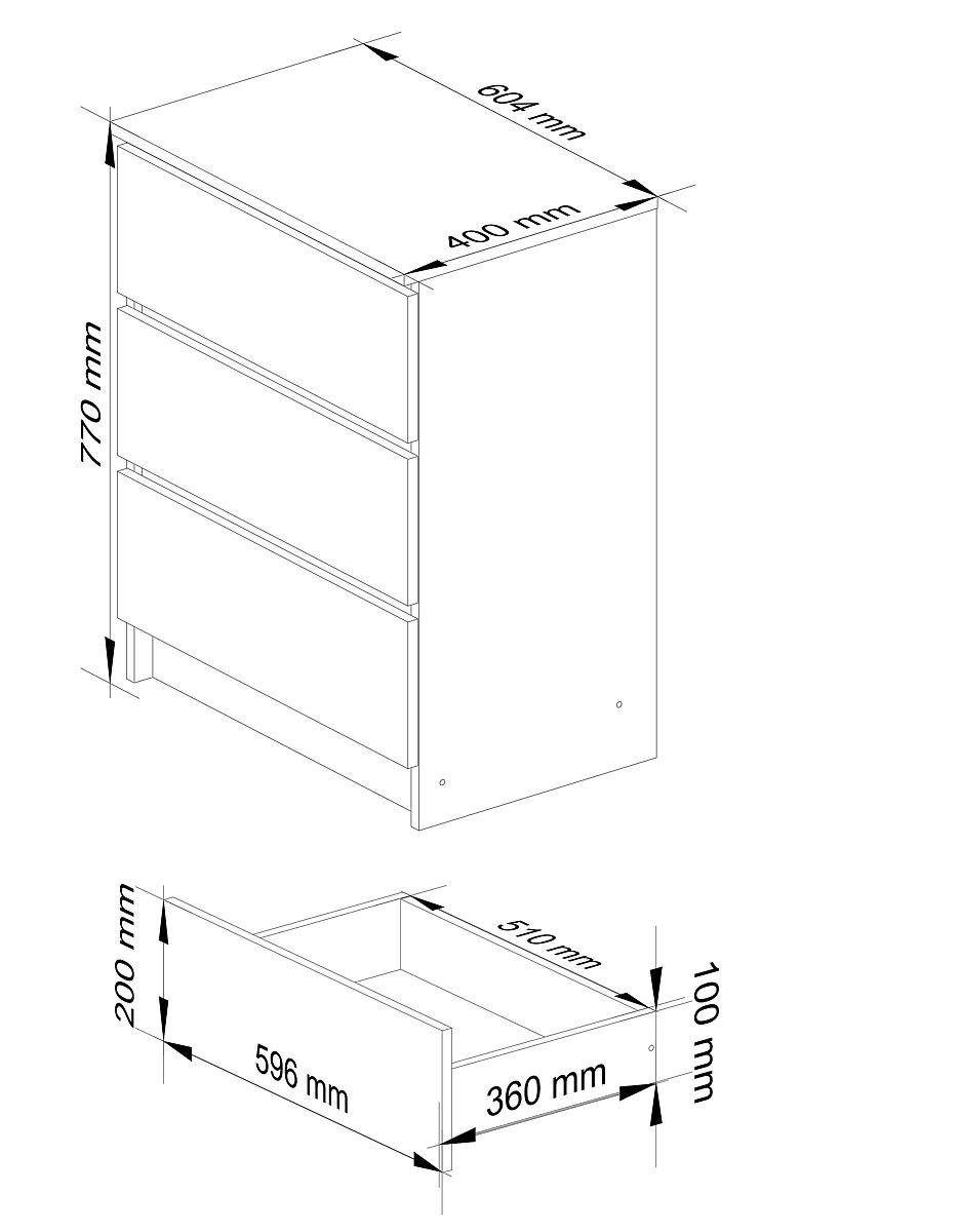 CHEST OF DRAWERS K60 3 DRAWERS Made from 16mm abrasion-resistant laminated board.