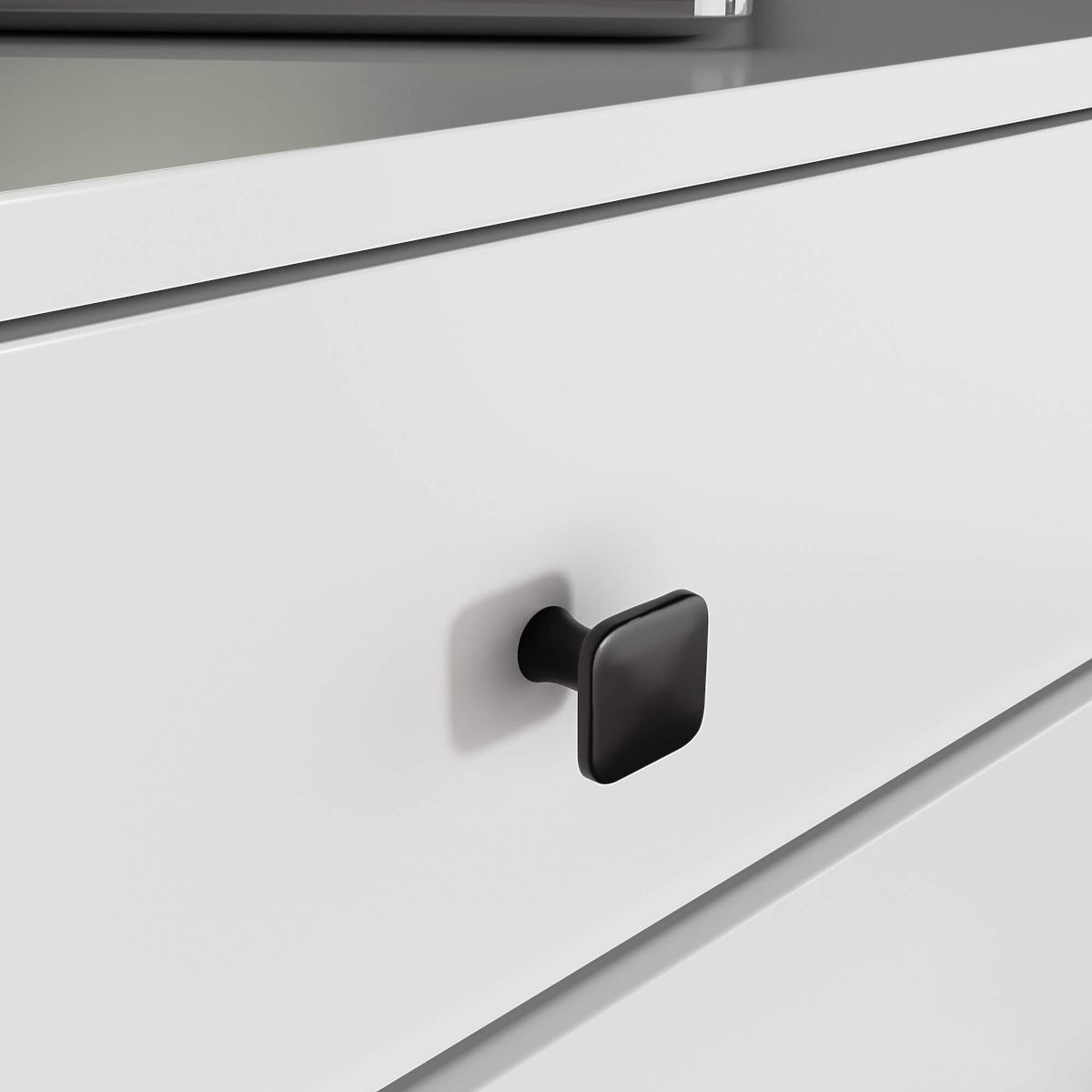A small chest of drawers is a piece of furniture that will find use in any room. Modern colors, solid construction, and careful craftsmanship have led to the creation of a cabinet that fits, for example, in the hallway, living room, children's room, or even the bedroom. It can also be used in office spaces, where it allows for storing numerous documents and other office supplies. The chest consists of 4 drawers. The furniture combines white and black colors.