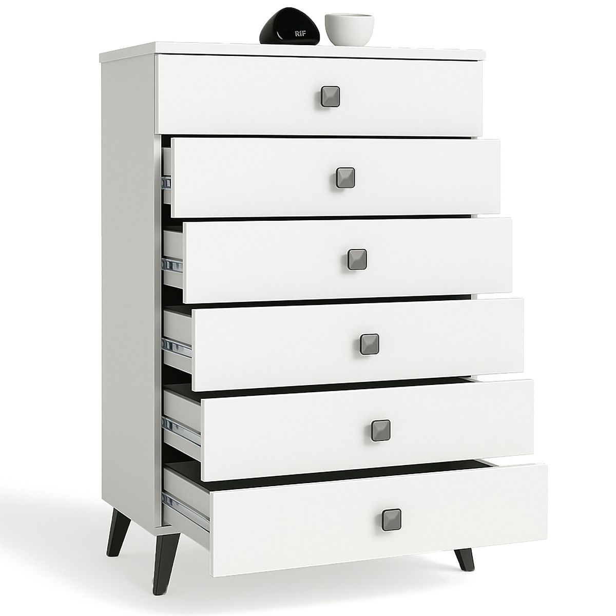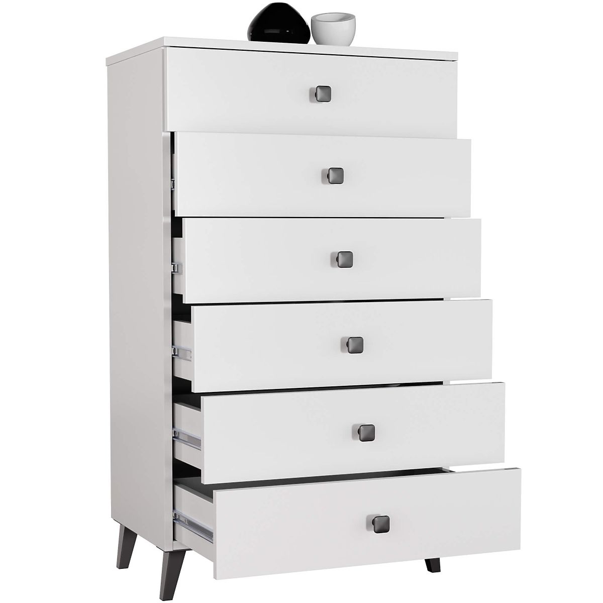 MOBI 6-DRAWER WHITE BLACK CHEST OF DRAWERS