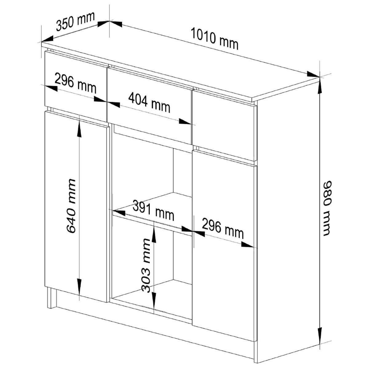 CHEST OF DRAWERS K100 Made from 16mm abrasion-resistant laminated board.