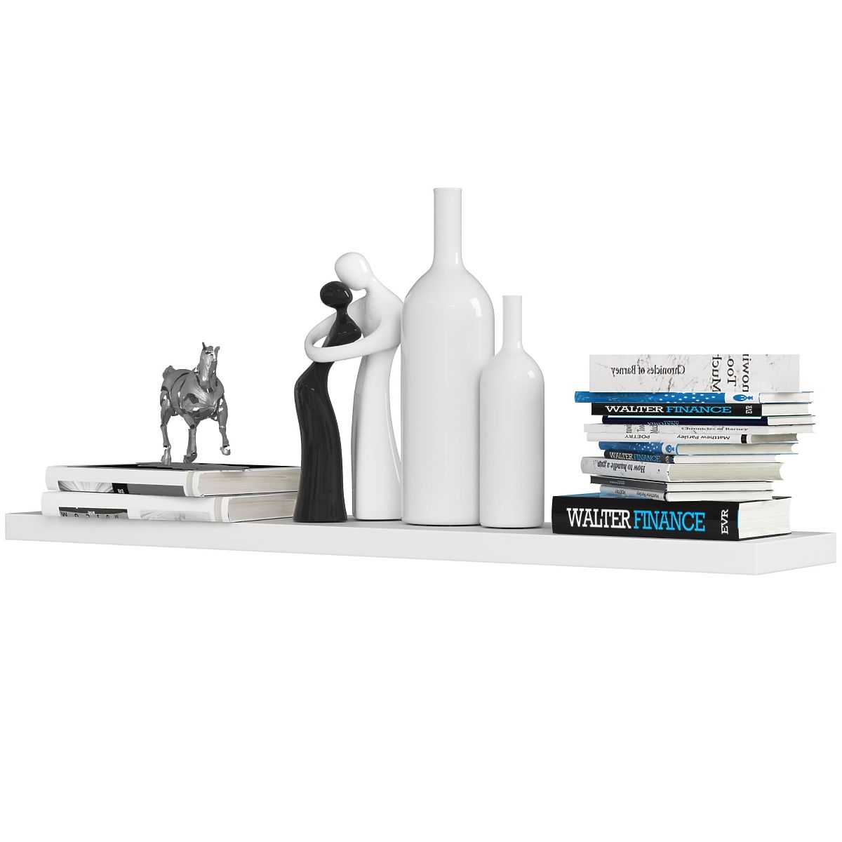 White laminated shelf, 100cm wide, with invisible wall mounts. .. more