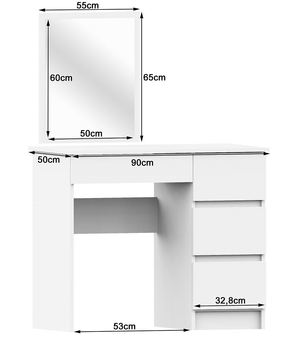 Lukafurniture.eu » Furniture / Toiletry tables / COSMETIC VANITY TABLE WITH MIRROR T-6/SL 500x600 RIGHT WHITE