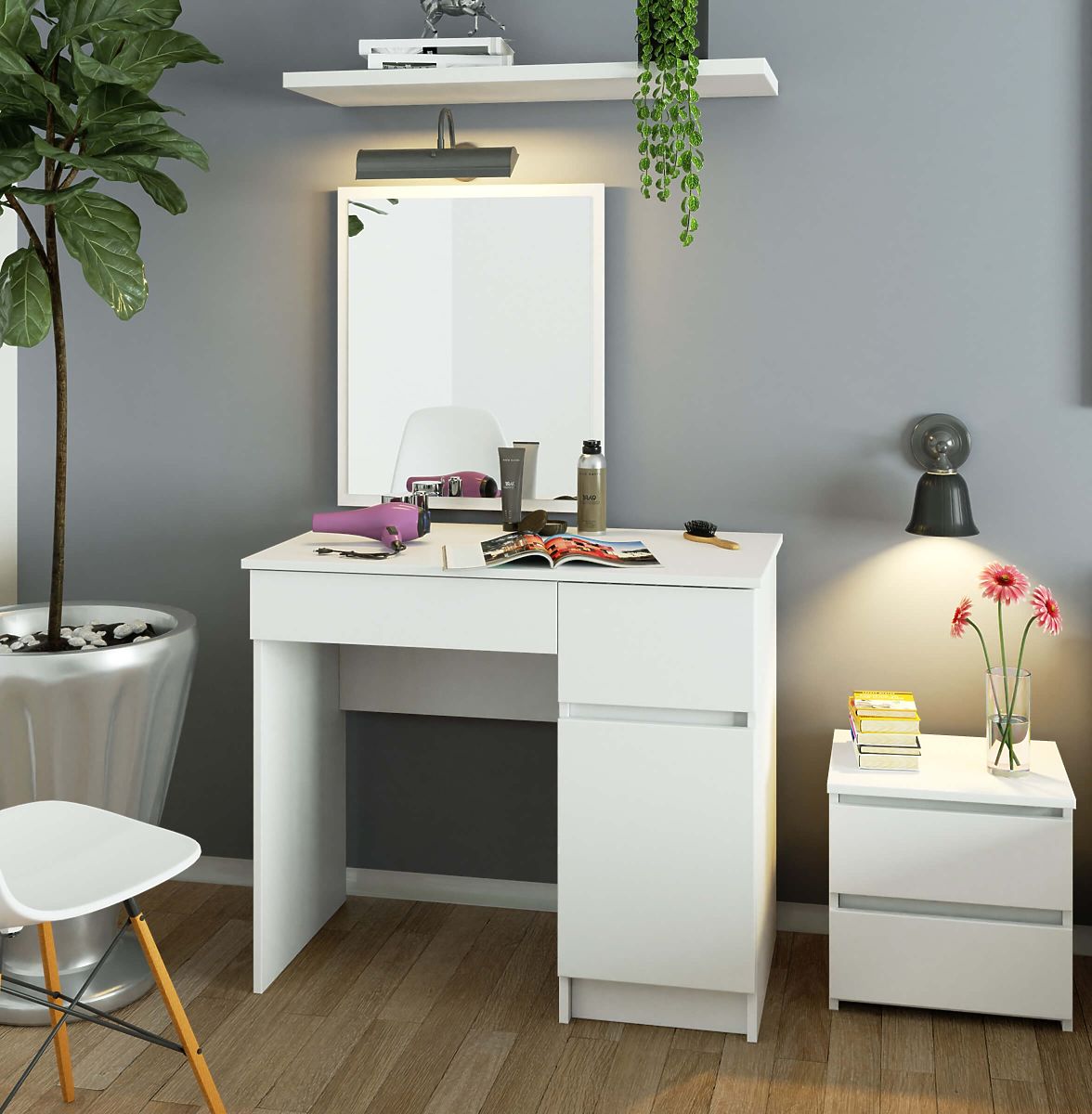 A compact version of a vanity table for women who want the option for quick makeup every morning. Designed for the bedroom and beyond. The dimensions of the vanity table are also perfect for beauty salons.