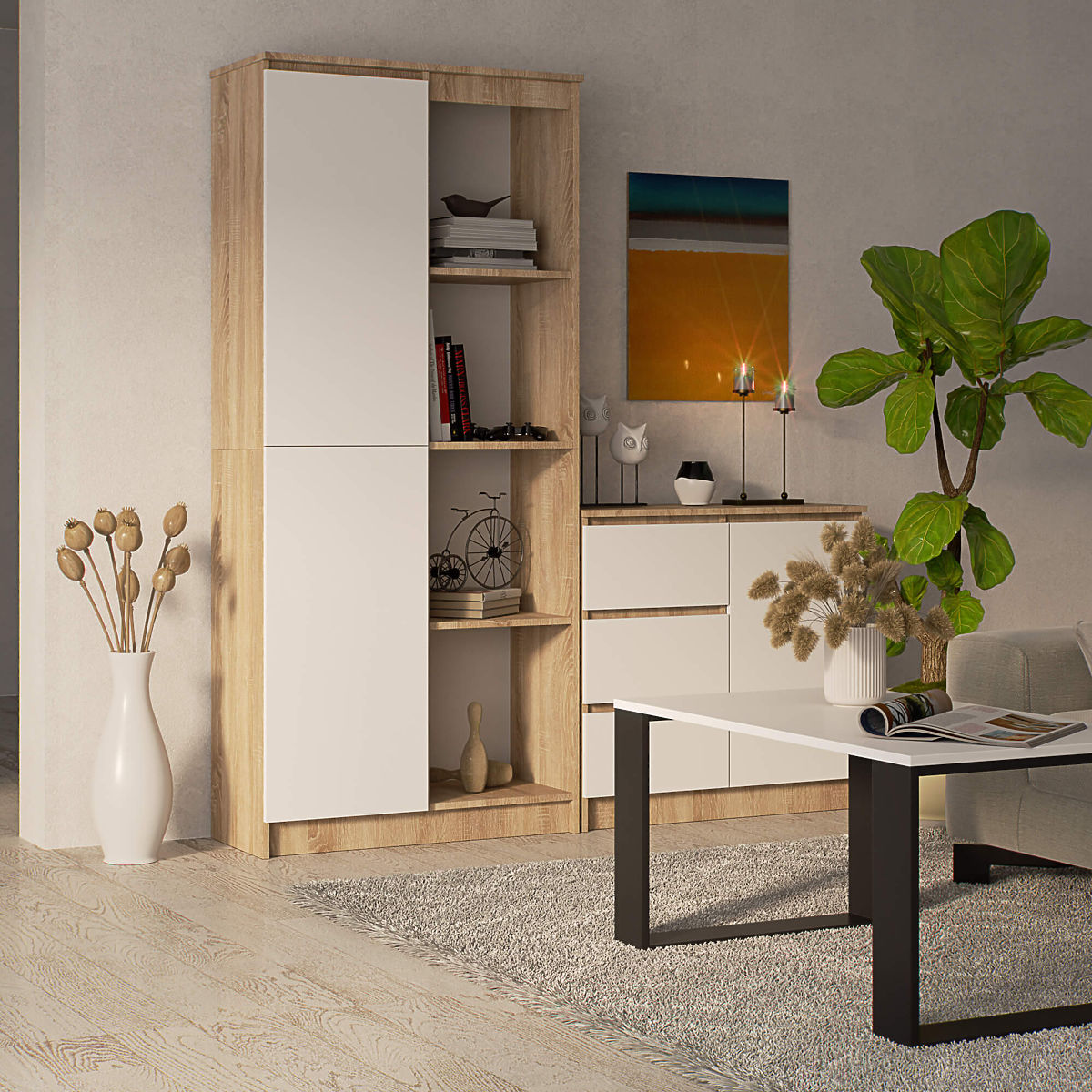 Office shelf with 1 door and 8 shelves, Oak Sonoma and White finish. .. more