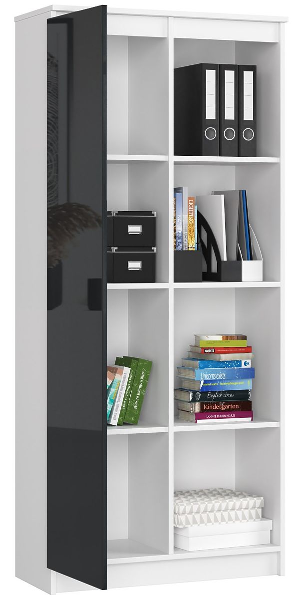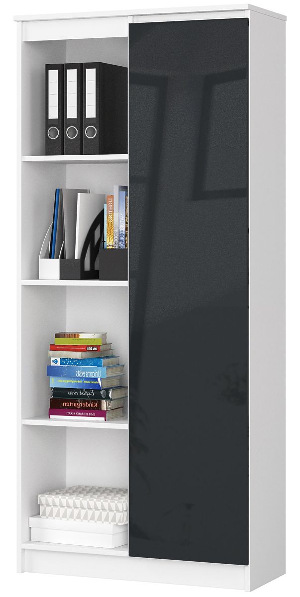 Lukafurniture.eu » Furniture / Shelves / OFFICE SHELF R 80 cm CLP 1 DOOR 4 SHELVES WHITE / GRAPHITE GLOSS