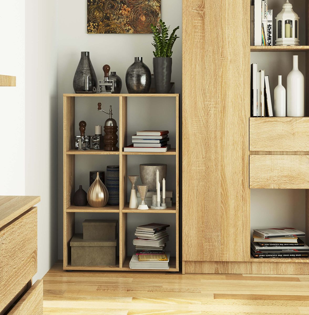 QUAD Shelf Unit with 6 shelves in stylish Sonoma oak. .. more