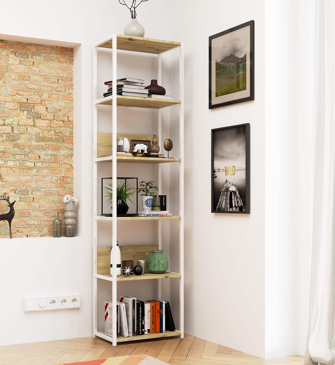 The metal loft shelf is a practical and modern piece of furniture suitable for both the living room and the office. The shelf features a white metal frame and 6 shelves in Oak Artisan color. The shelves are made from 16 mm thick laminated board, a durable and abrasion-resistant material. The edges are additionally protected with an ABS edge, ensuring the furniture remains looking good even with very intensive daily use. The shelf is equipped with 6 shelves to place items you want to display or have easily accessible. Overall, it has a very stylish and modern appearance.