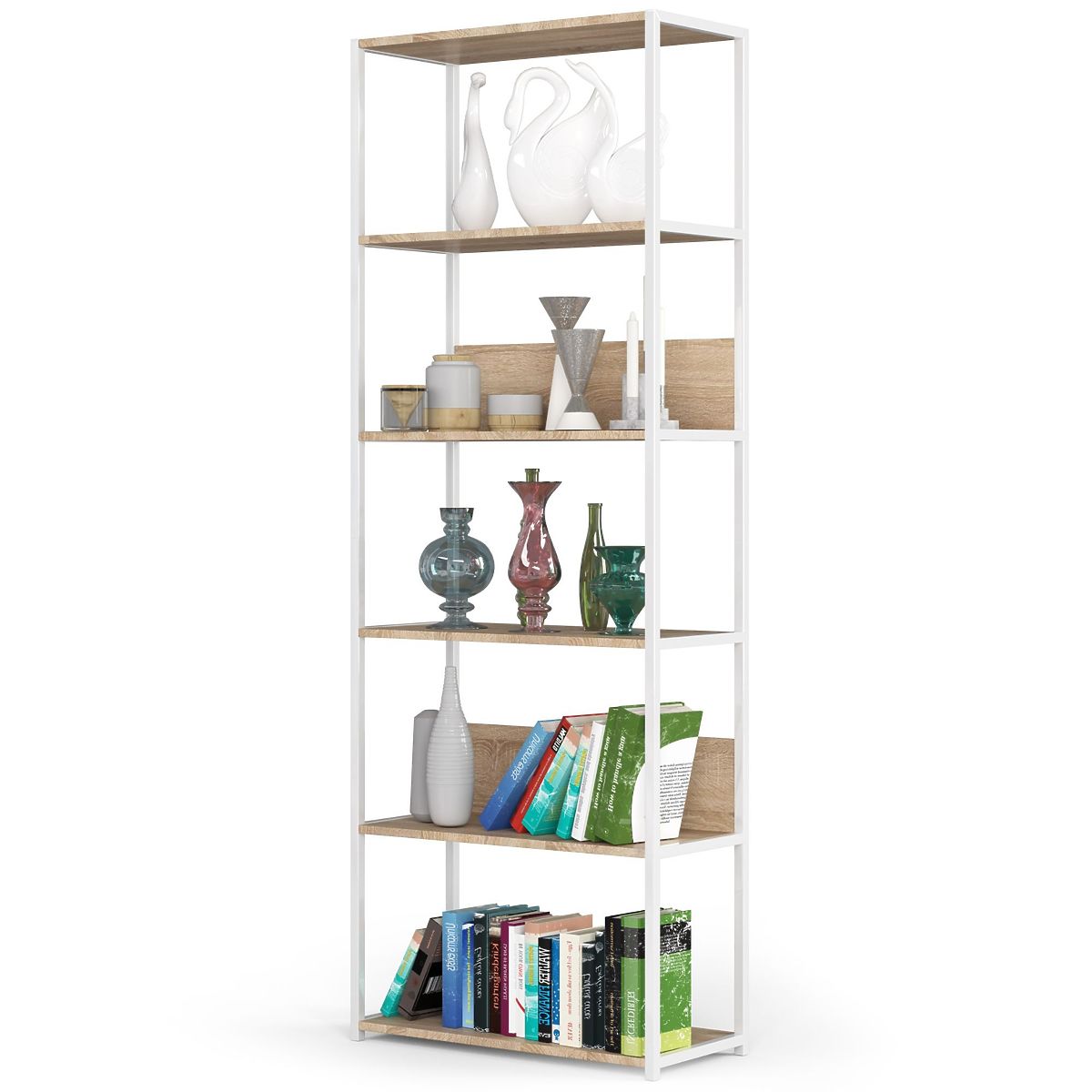 - Elegant appearance: characterized by a simple form, the frame is white while the shelves are sonoma oak,
