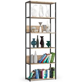 The metal loft shelf is a practical and modern piece of furniture suitable for both the living room and the office. The shelf features a black metal frame and 6 shelves in Sonoma oak color. The shelves are made from 16 mm thick laminated board, a durable and sturdy material known for its high abrasion resistance. Additionally, the edges are protected with ABS edging, ensuring the furniture looks good even with very intensive daily use. The shelf is equipped with 6 shelves where you can place items you want to display or keep handy. Overall, it has a very stylish and modern appearance.