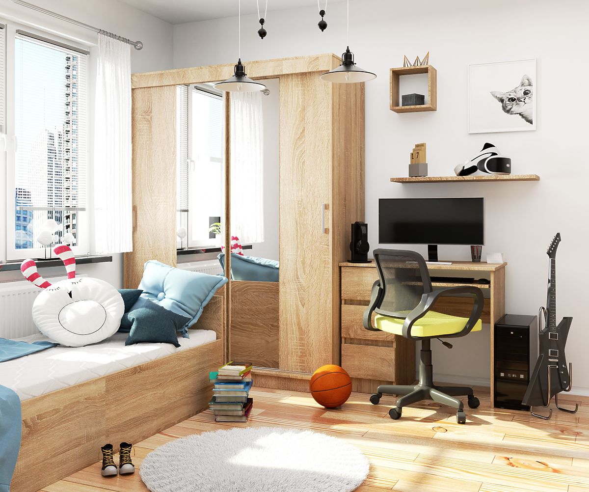 Spacious wardrobe in Sonoma oak color, with sliding doors and a mirror, is a versatile and timeless piece of furniture that will fulfill its function in almost any living space. It is perfect for a children's and youth room, as well as a bedroom or dressing room. In a suitably large hallway, it can serve as a wardrobe for outerwear and other household necessities.