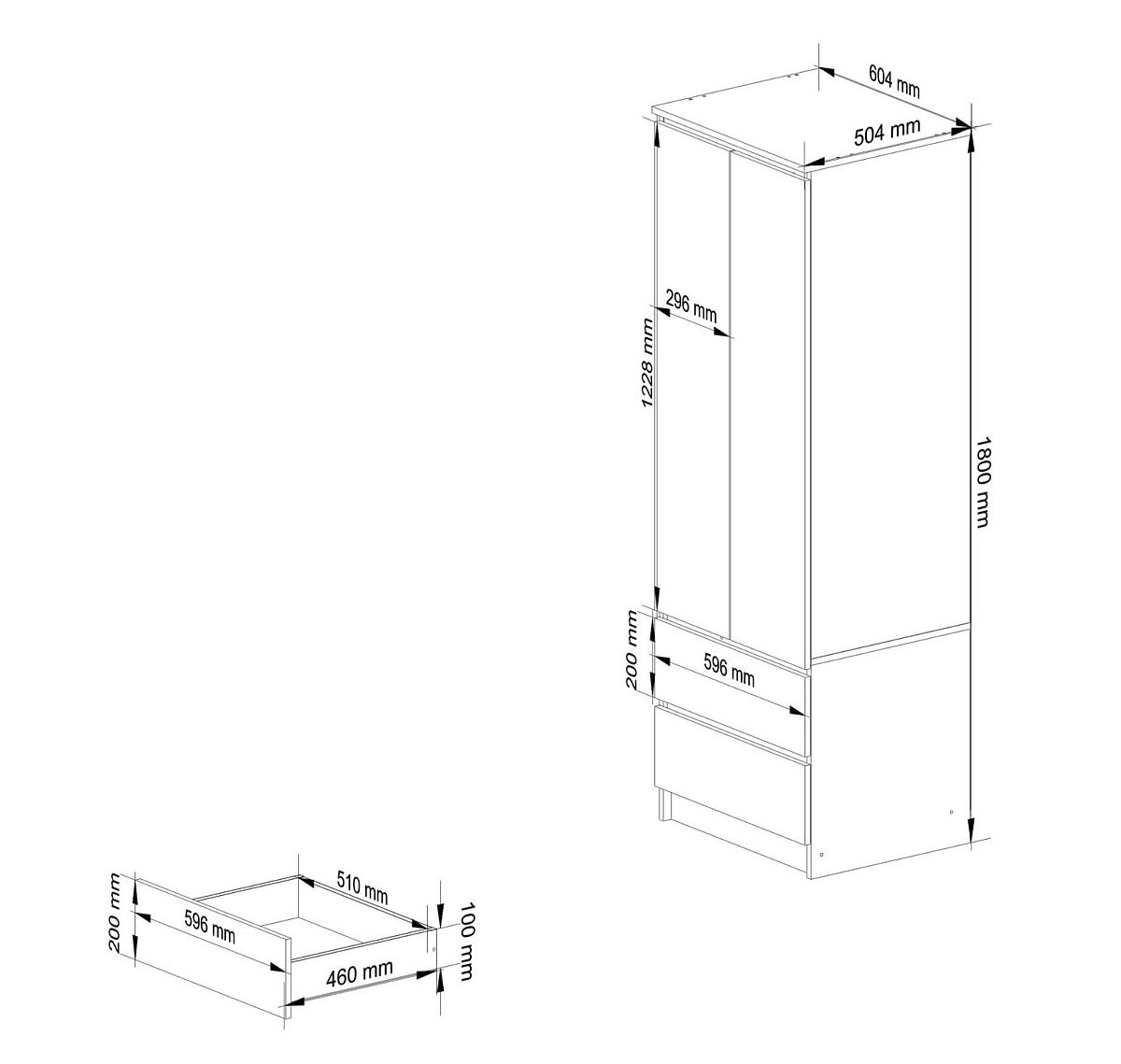 WARDROBE STAR K60 2 DOORS, 2 DRAWERS Made from 16mm abrasion-resistant laminated board.