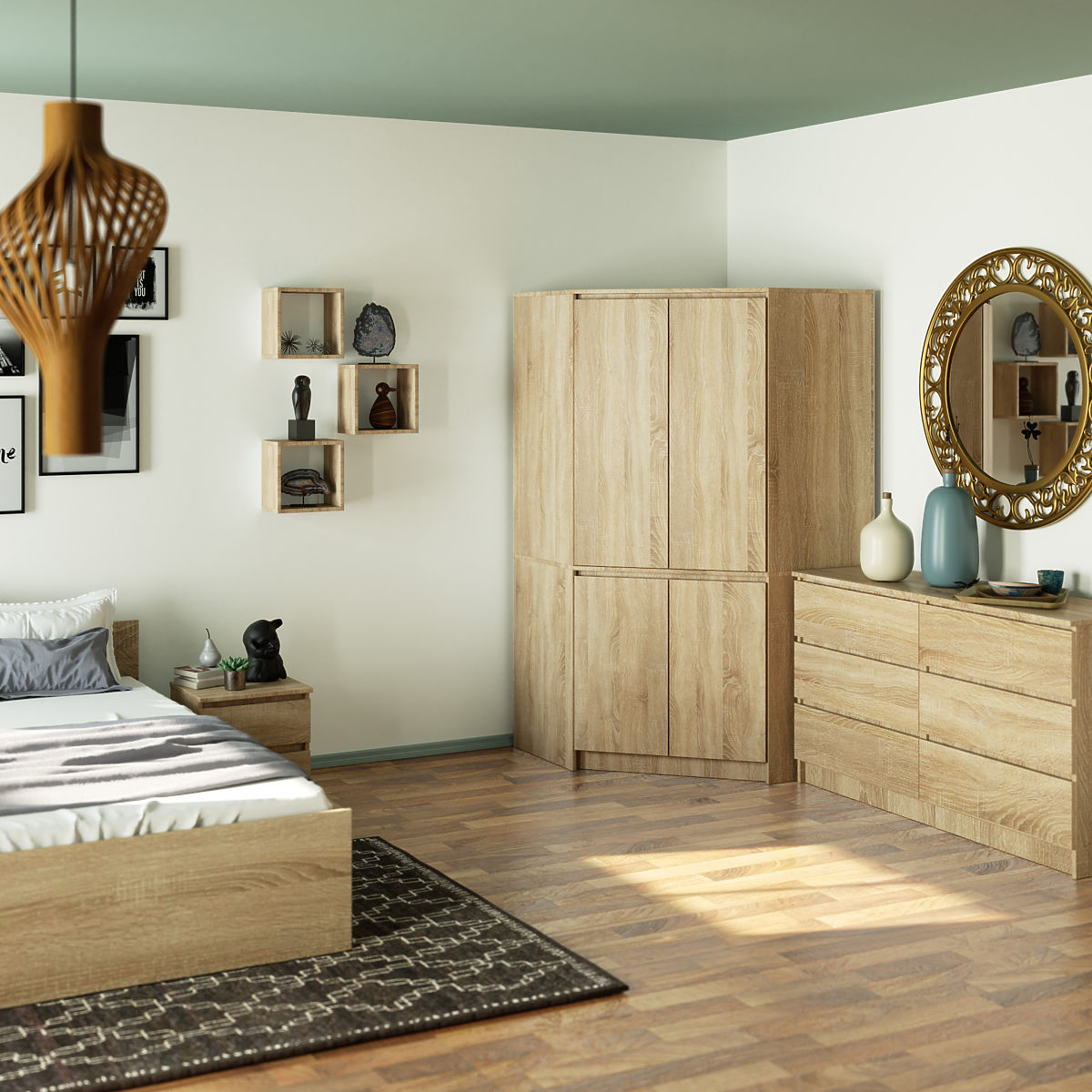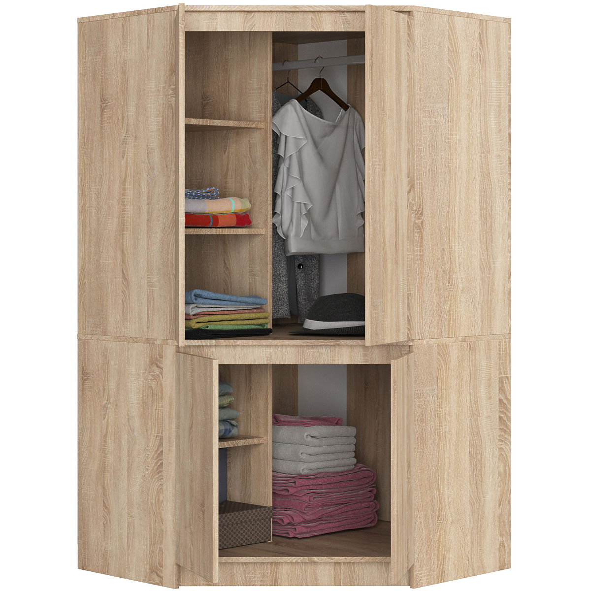 Four-door corner wardrobe with ample storage in oak sonoma finish. .. more