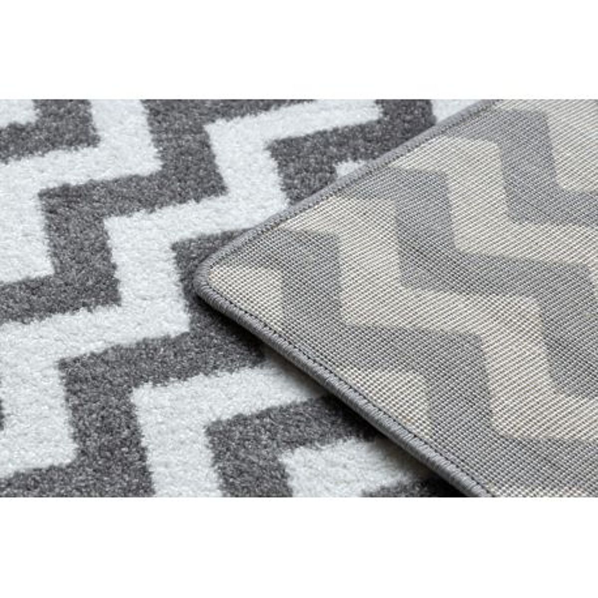 Modern zigzag pattern carpet in gray and white. .. more