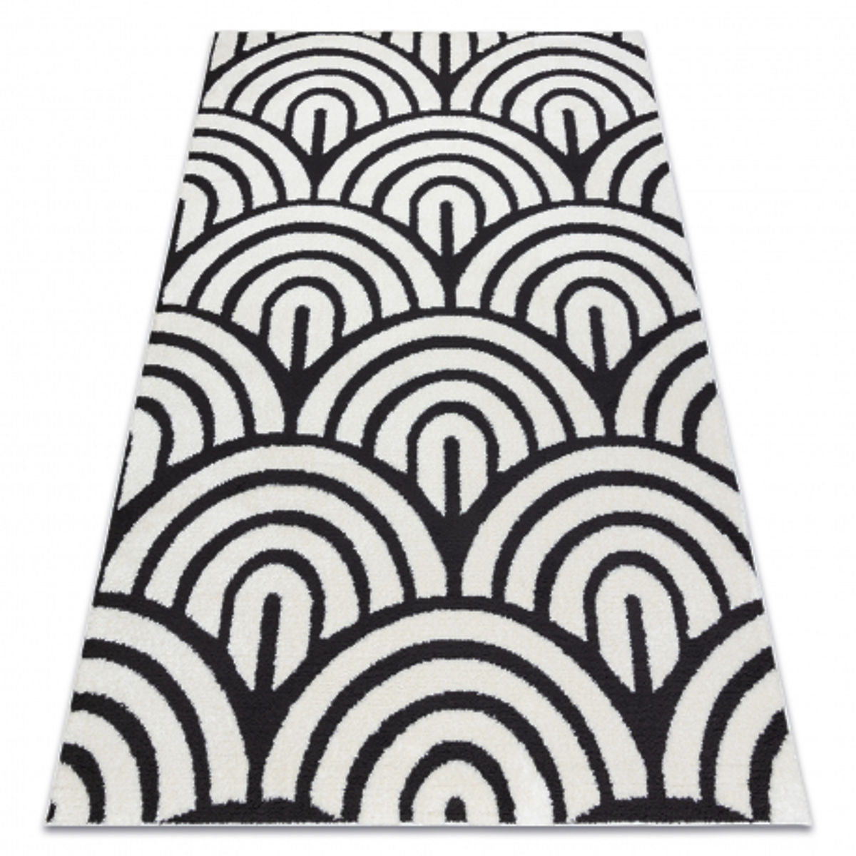 Bring a touch of elegance to your interior with the modern rectangular carpet MODE 8629 featuring a shell motif in a combination of cream and black colors. This stylish carpet adds a sophisticated and contemporary character to any space, making it perfect for the living room, bedroom, or study, where it creates a pleasant and harmonious atmosphere. The carpet is made of 100% polyester, ensuring durability, easy maintenance, and long-lasting life. The 15 mm thickness provides a comfortable feel underfoot, while the weight of 1.8 kg/m² guarantees the carpet's stability and firmness on the floor. The elegant combination of cream and black shades along with the shell motif easily complements various furniture styles and color accessories, allowing the carpet to perfectly fit into your interior.