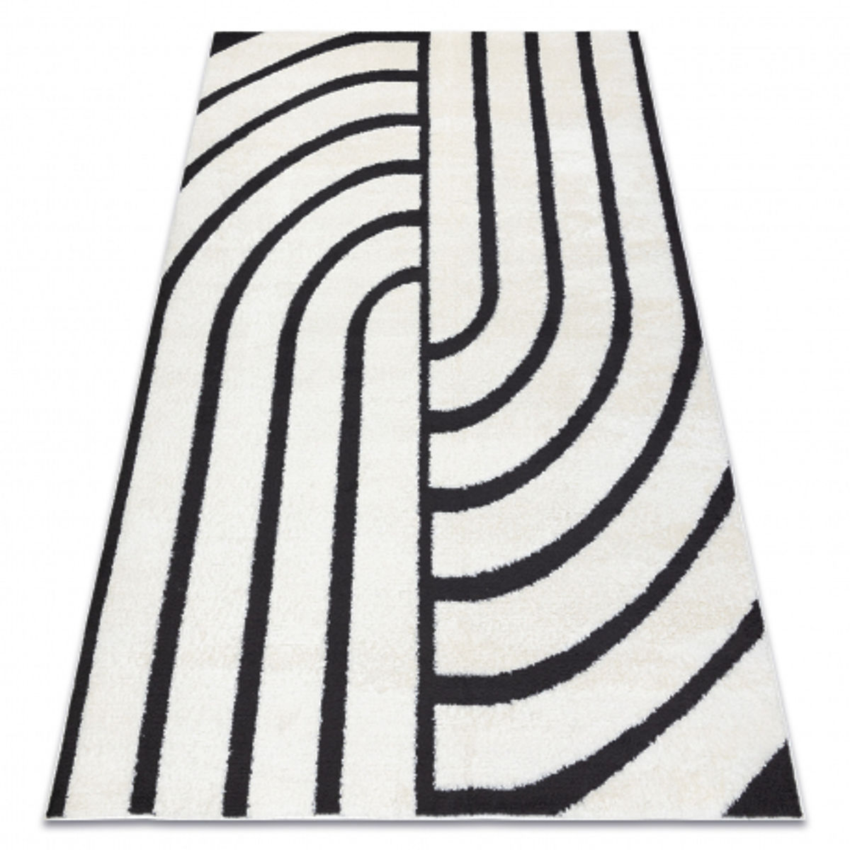 Bring modern elegance into your interior with the rectangular carpet MODE 8631, boasting a geometric design in a combination of cream and black colors. This stylish carpet instantly revitalizes any space, adding a sophisticated, contemporary character. It is perfect for the living room, bedroom, or study, creating a pleasant and harmonious atmosphere. Made from 100% polyester, it ensures long-lasting durability, resistance, and easy maintenance. The 15 mm thickness provides a comfortable feel underfoot, while the weight of 1.8 kg/m² guarantees stability and firmness on the floor. The modern geometric pattern and neutral cream shade easily blend with various furniture styles and accessories, allowing for simple coordination with your interior.