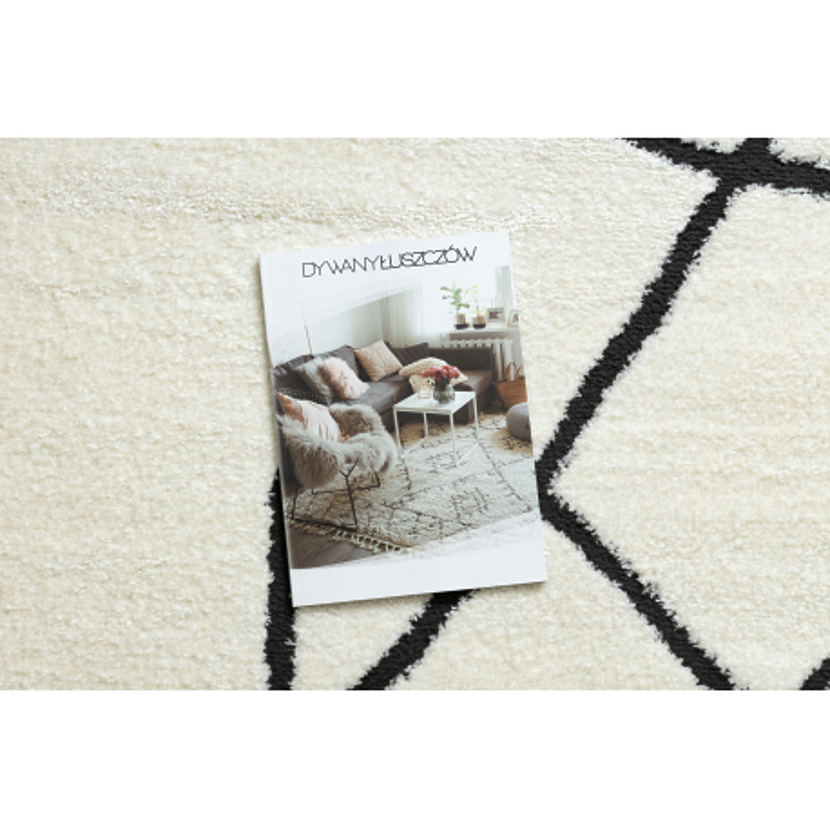 Stylish carpet with abstract cream and black pattern for a sophisticated interior. .. more