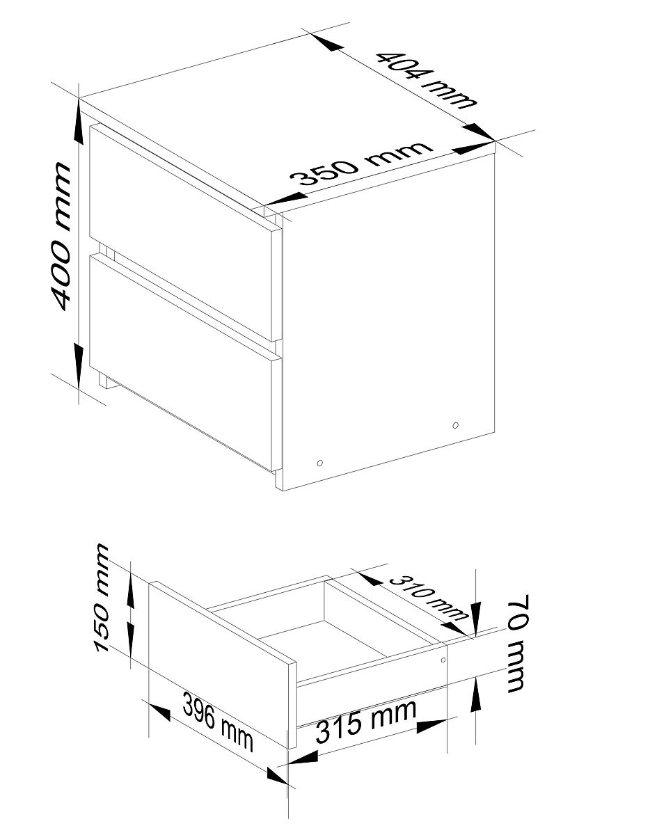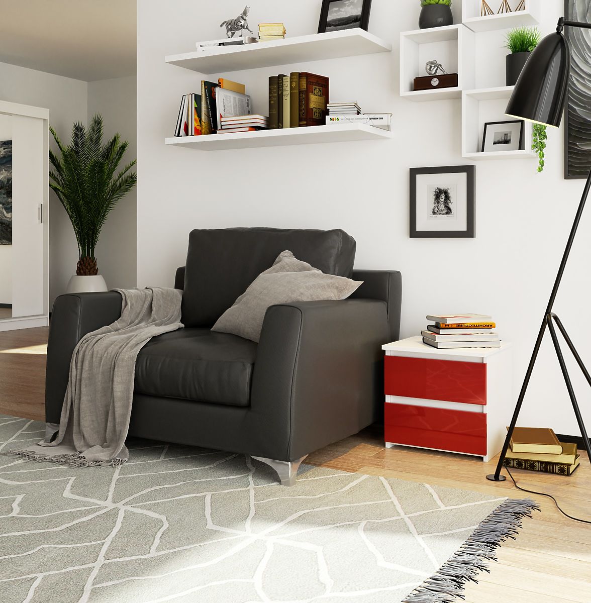 In our store's offer, you'll find a fashionable and high-quality nightstand, whose design and quality will amaze you. The cabinet is made from laminated board, resistant to abrasion. This guarantees that this beautiful furniture will serve you for years without losing its aesthetic value. It's worth mentioning that the fronts were also made from red gloss board. Additionally, the drawers in this cabinet move on metal roller guides. To ensure even greater protection, the edges and fronts of the cabinet are edged with ABS tape, aimed at providing the furniture with high protection against all mechanical damages.
