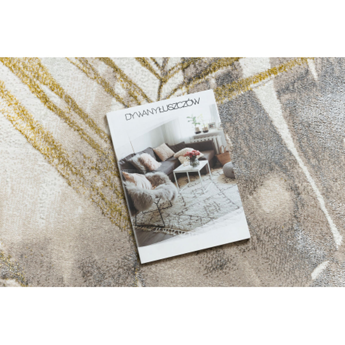 The BLISS Z216AZ137 rug in an elegant combination of cream and gold colors adds a luxurious yet calming atmosphere to your interior. The palm leaf motif beautifully enlivens the space, bringing lightness and natural elegance. Gold accents create a subtle glamour effect, while the cream base appears clean, airy, and easily complements modern or minimalist furniture. The rug is made from 100% polyester yarn, which is pleasantly soft, durable, and easy to maintain. The textured design with varying pile heights – 6 mm and 8 mm – creates a three-dimensional surface and highlights individual parts of the pattern. A weight of around 2.1 kg/m² (depending on the specific pattern) emphasizes the quality and stable construction. The BLISS Z216AZ137 model is suitable for living rooms, bedrooms, or elegant hallways, where it becomes a stylish and harmonious addition to the interior.