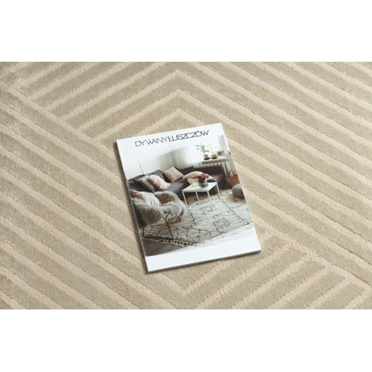 Bring harmony and style to your interior with the BALANCE 1503 taupe carpet, which combines geometric and structural design with a subtle glamour effect. The beige shade adds warmth and elegance to the space, while the carpet's texture adds an interesting visual element that catches the eye at first glance. The carpet is made from a high-quality blend of polyester and acrylic, which is durable, pleasant to the touch, and easy to maintain. It is perfect for the living room, bedroom, or study, providing both a comfortable and decorative element.
